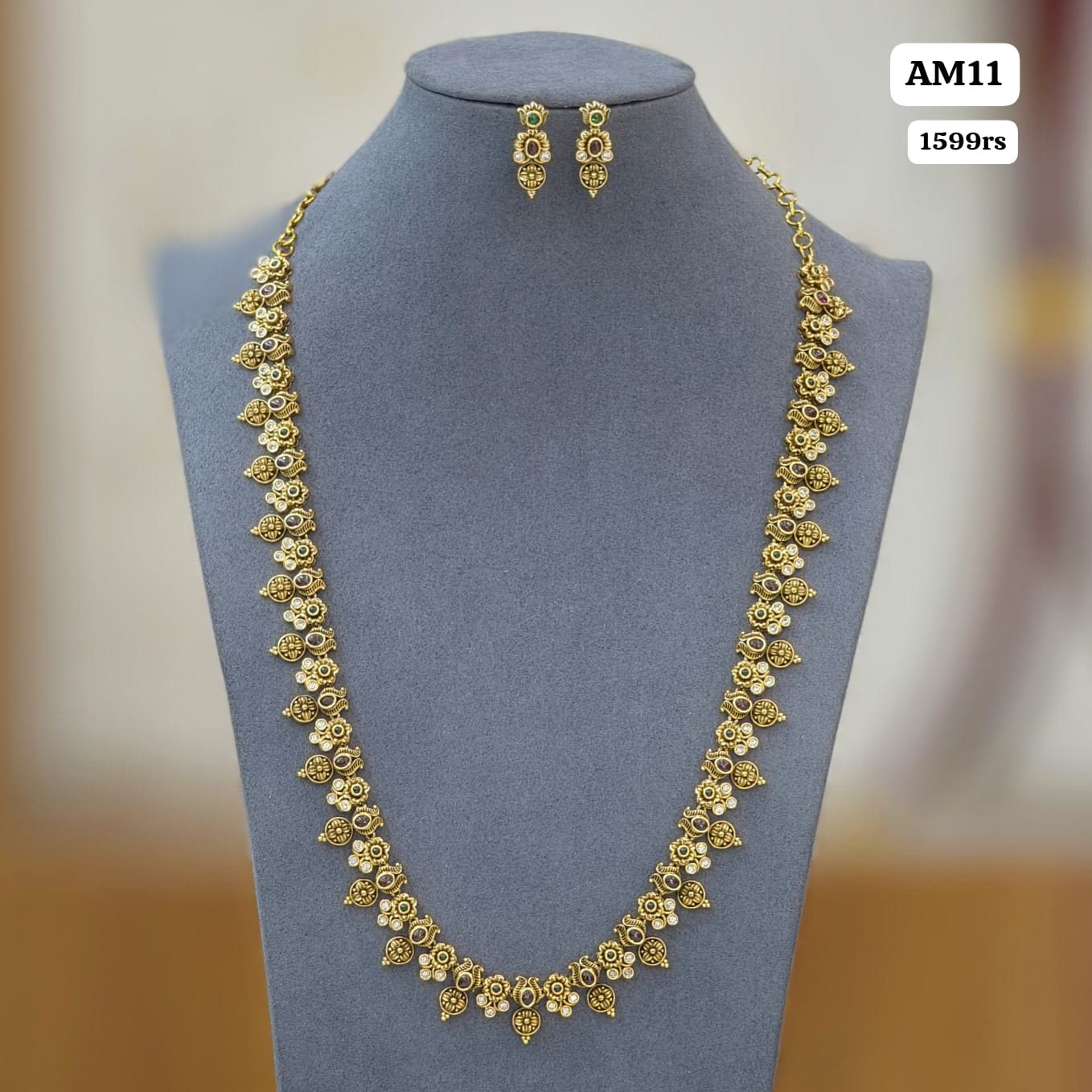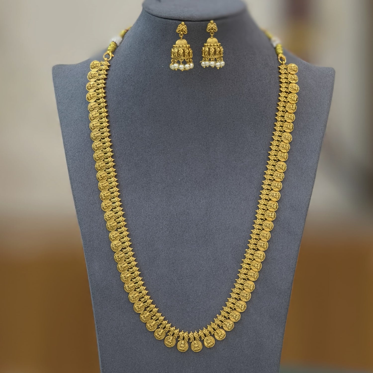Embrace the grandeur of tradition with our Long Harams Collection, featuring jewelry...