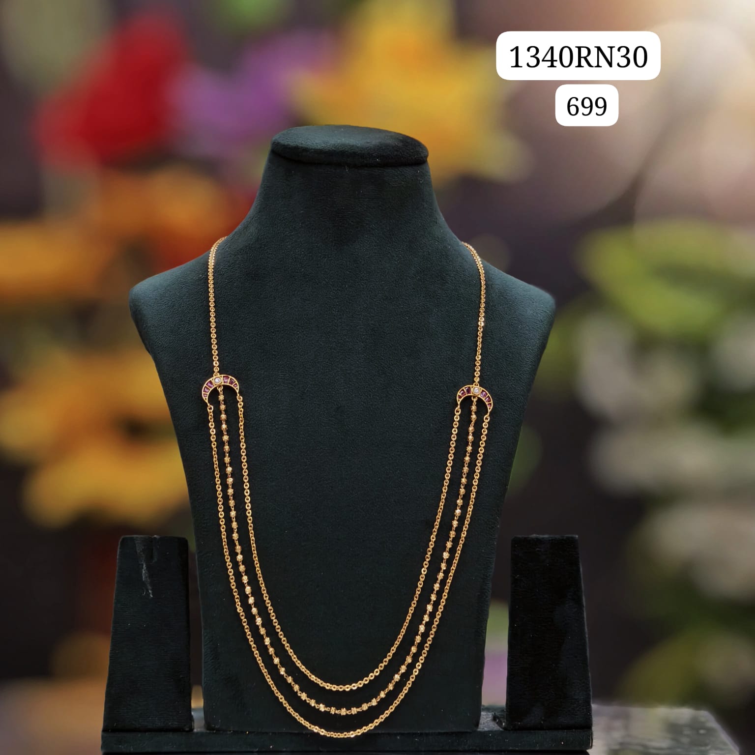 3 lines of chandraharam with 2 side pendants in moon shape.