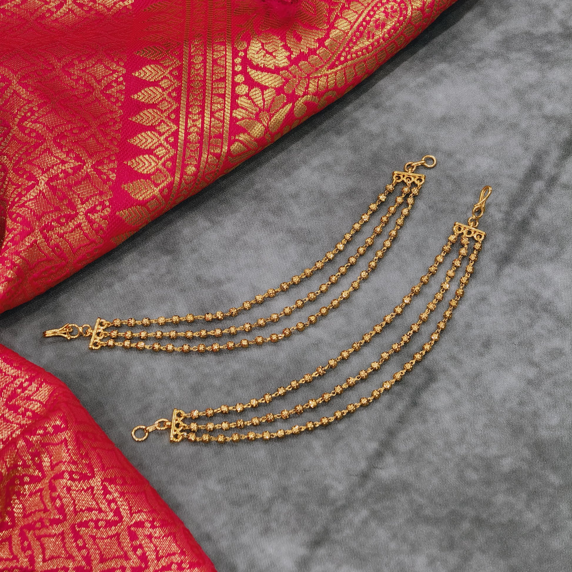 3 lines chempaswaralu with gold beads combination.complete gold finishing