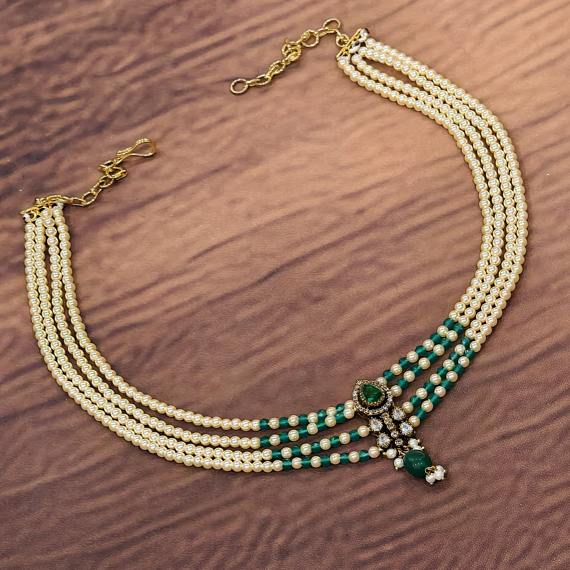 A beautiful layers neck piece with white and green combination pearls with Victorian finish pendant🌱❇️