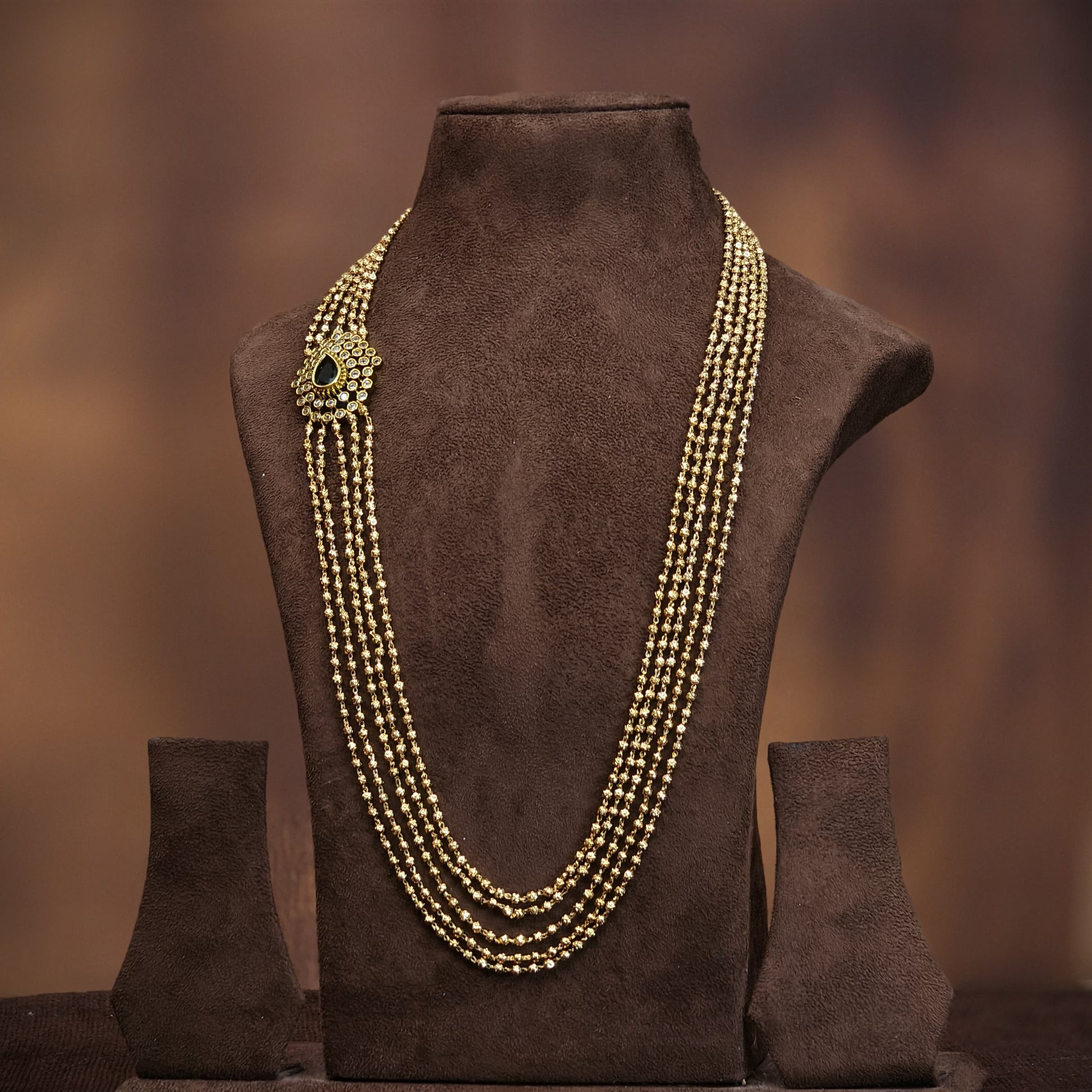 Green stone pendant with 5lines gold beads.CHANDRAHARAM TRADITIONAL WEAR😍✨
