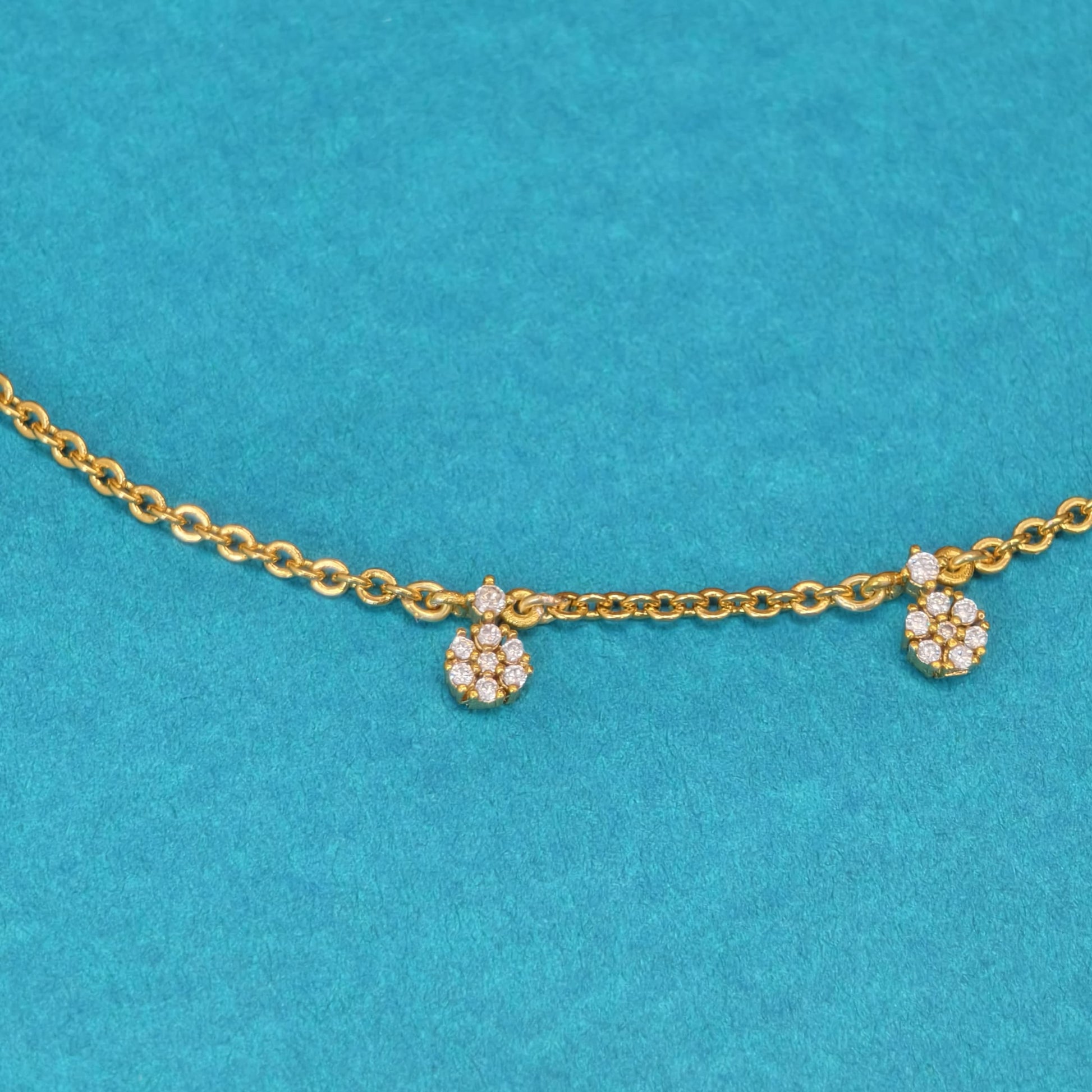 Micro gold finishing chain with 5 pendants in flower pattern for kids to adults.in the length of 15 to 16inches.