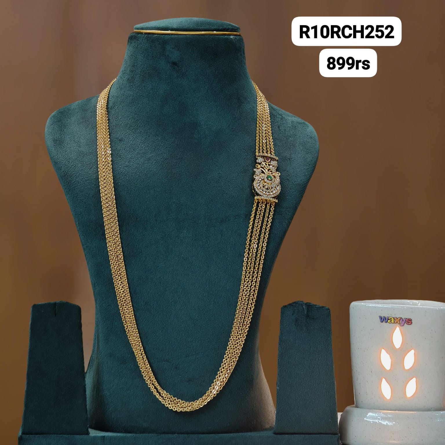 Beautiful 5 line chandraharam with white and green stone combination pendant.