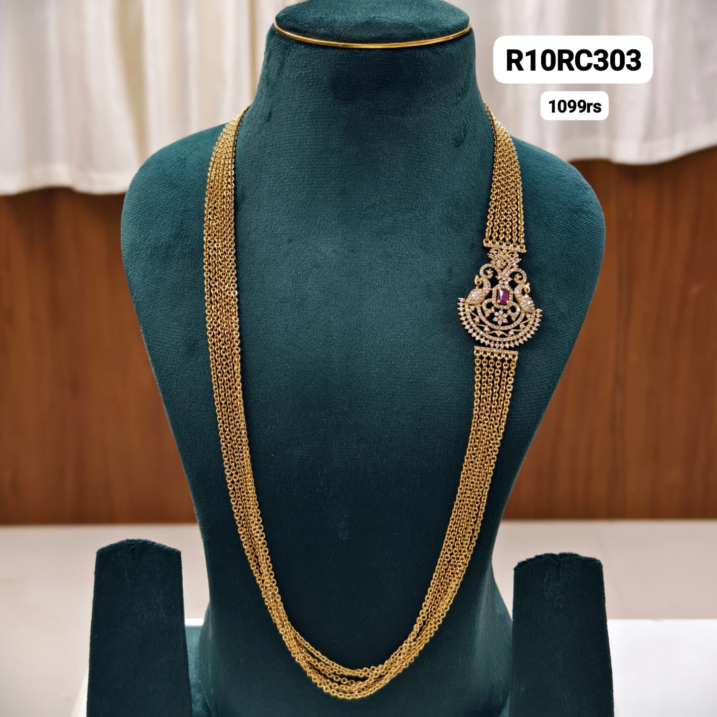 Pink and white colour stone pendant with 6 lines of chandraharam.aprox 29inchs