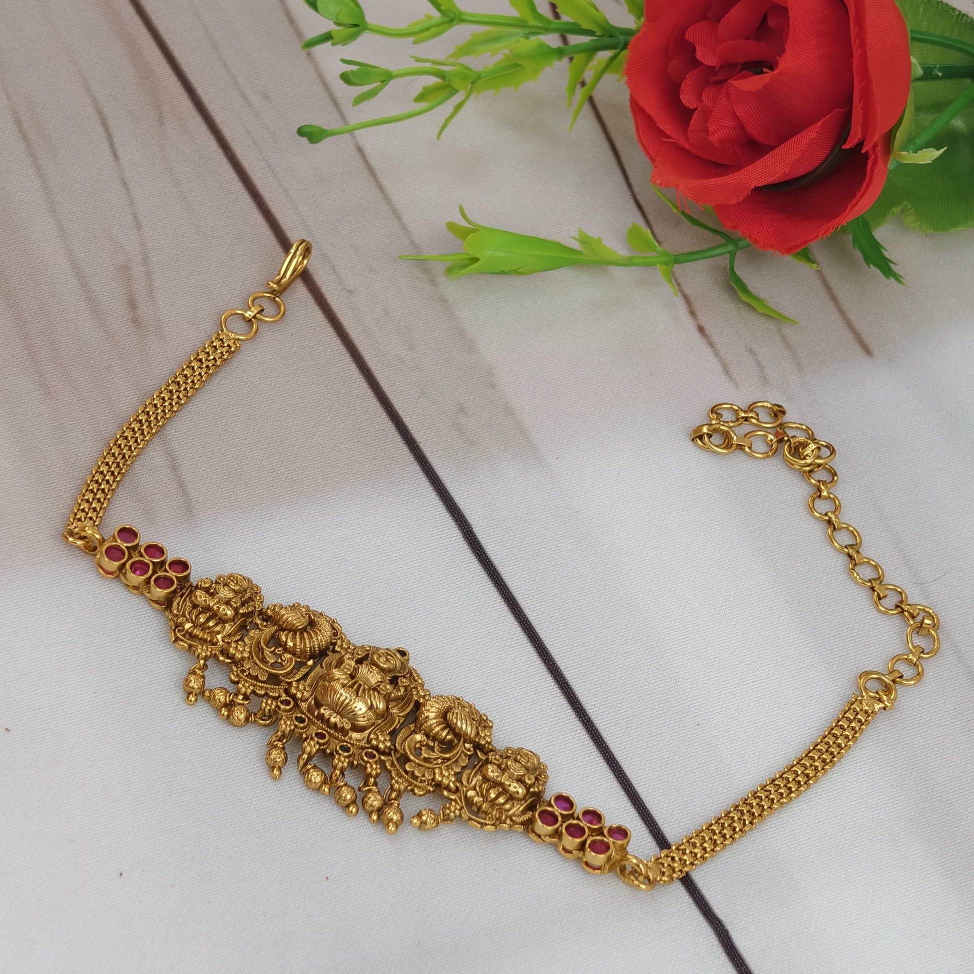 Antique finishing neckset.Lakshmi pendant with kempu stones combination.