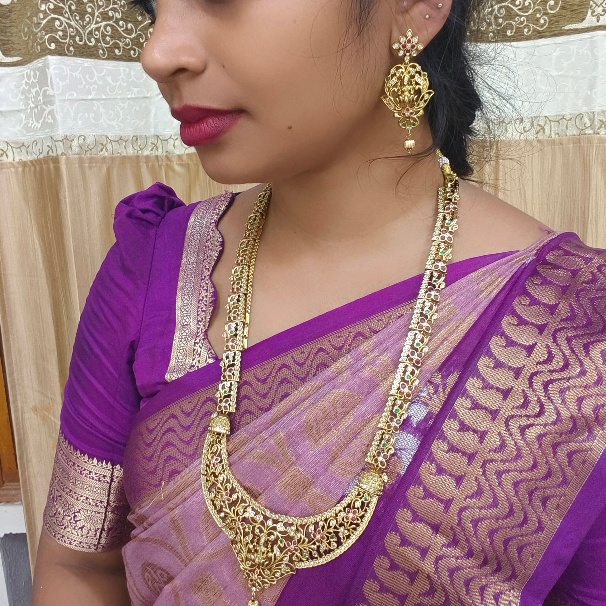 Budget range neck set. God motive pendant. Flexible. U shaped neck piece. 24 to 25 length.