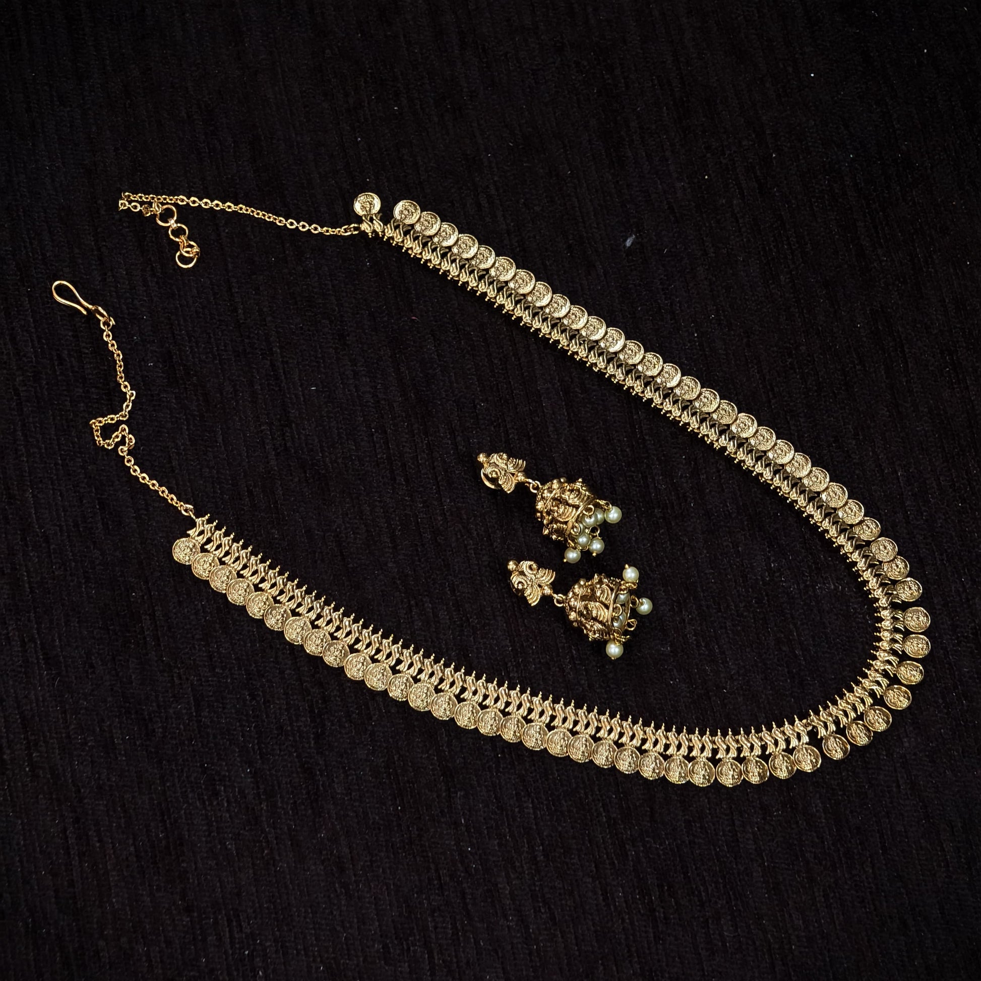 Antique finishing kasu neck set with butta earrings.budget friendly.premium quality.