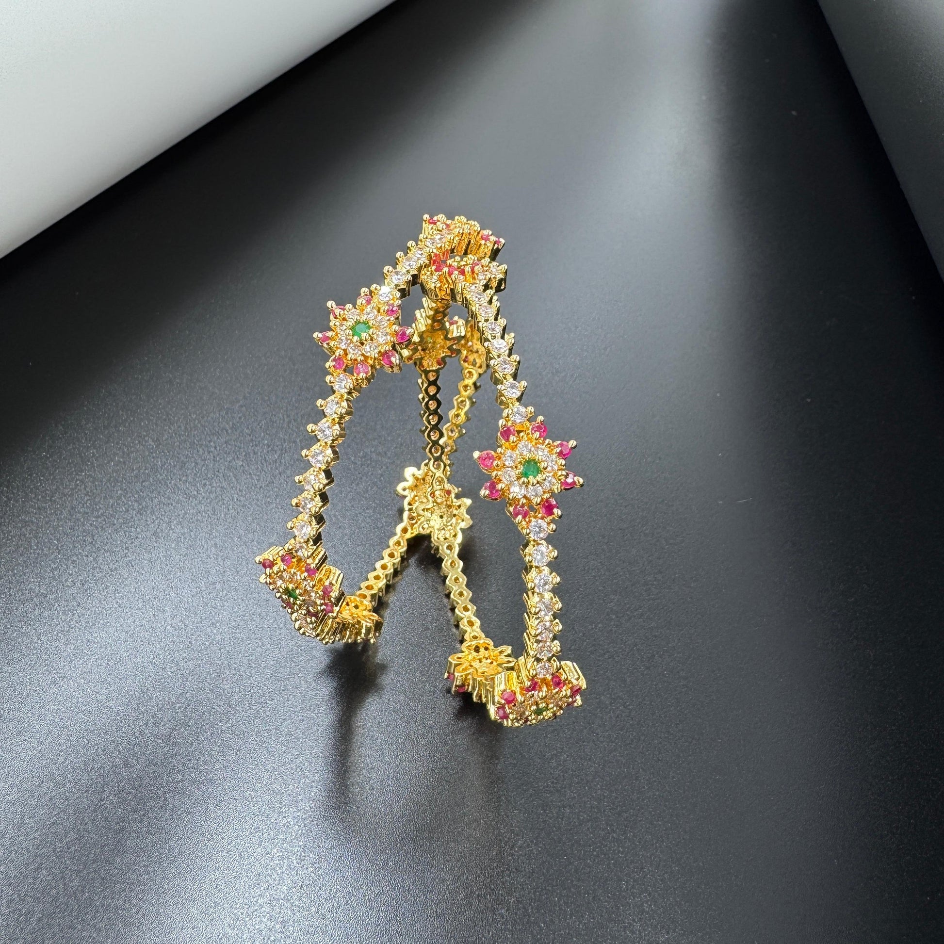 Stone work bangles with pink ,green and white stone work with flower pattern.