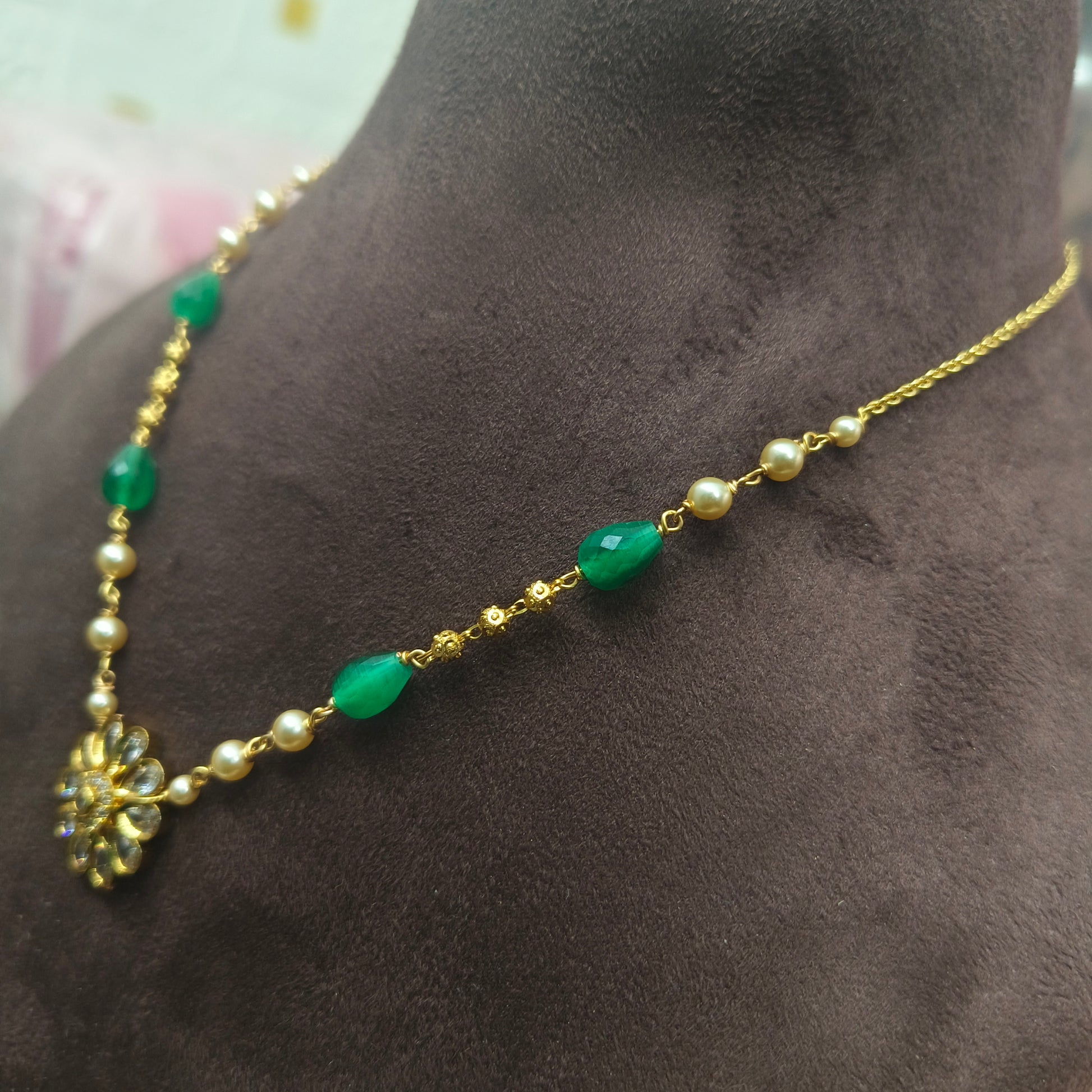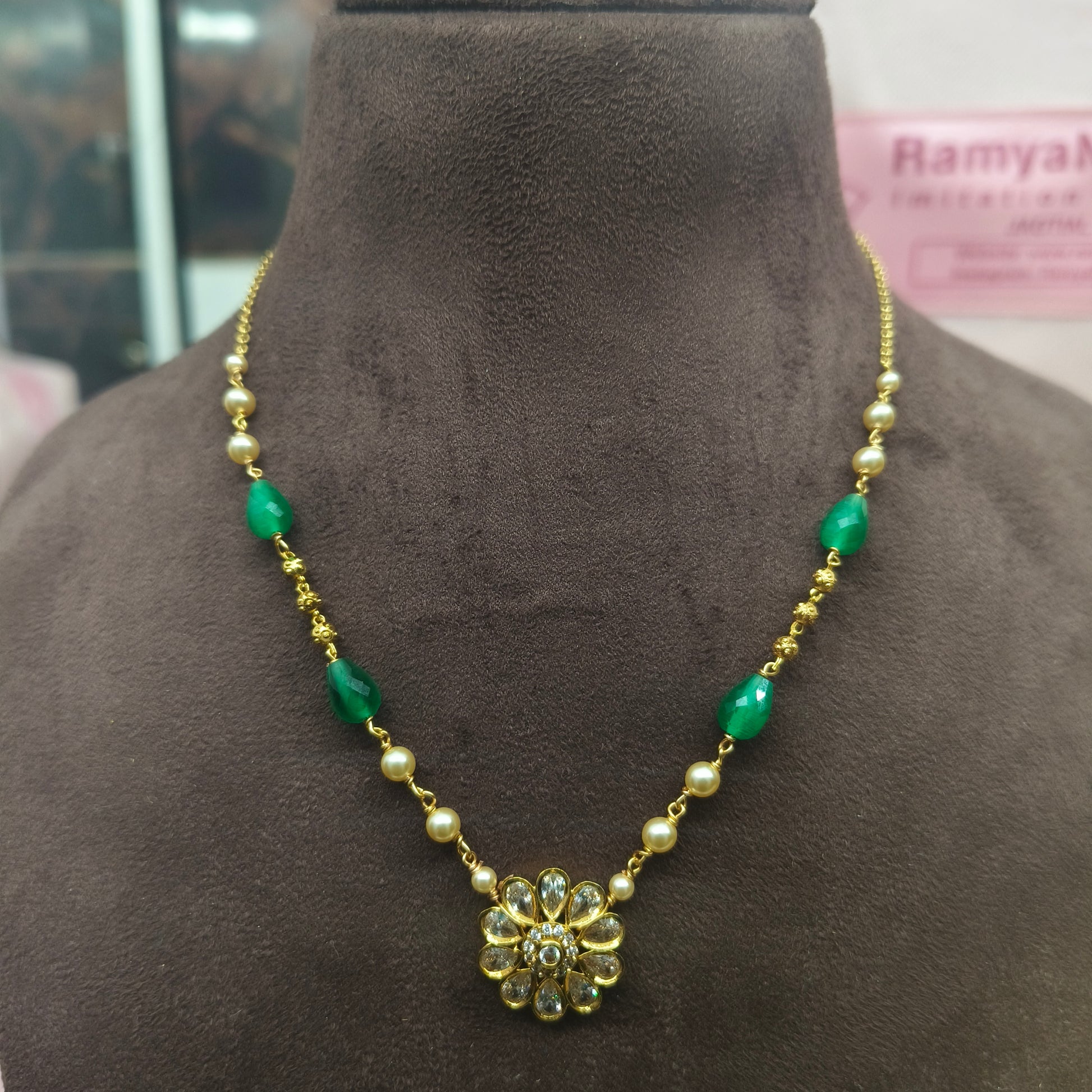Real beads chain with uncut pendant. Real cz manulu and Swarovski pearls