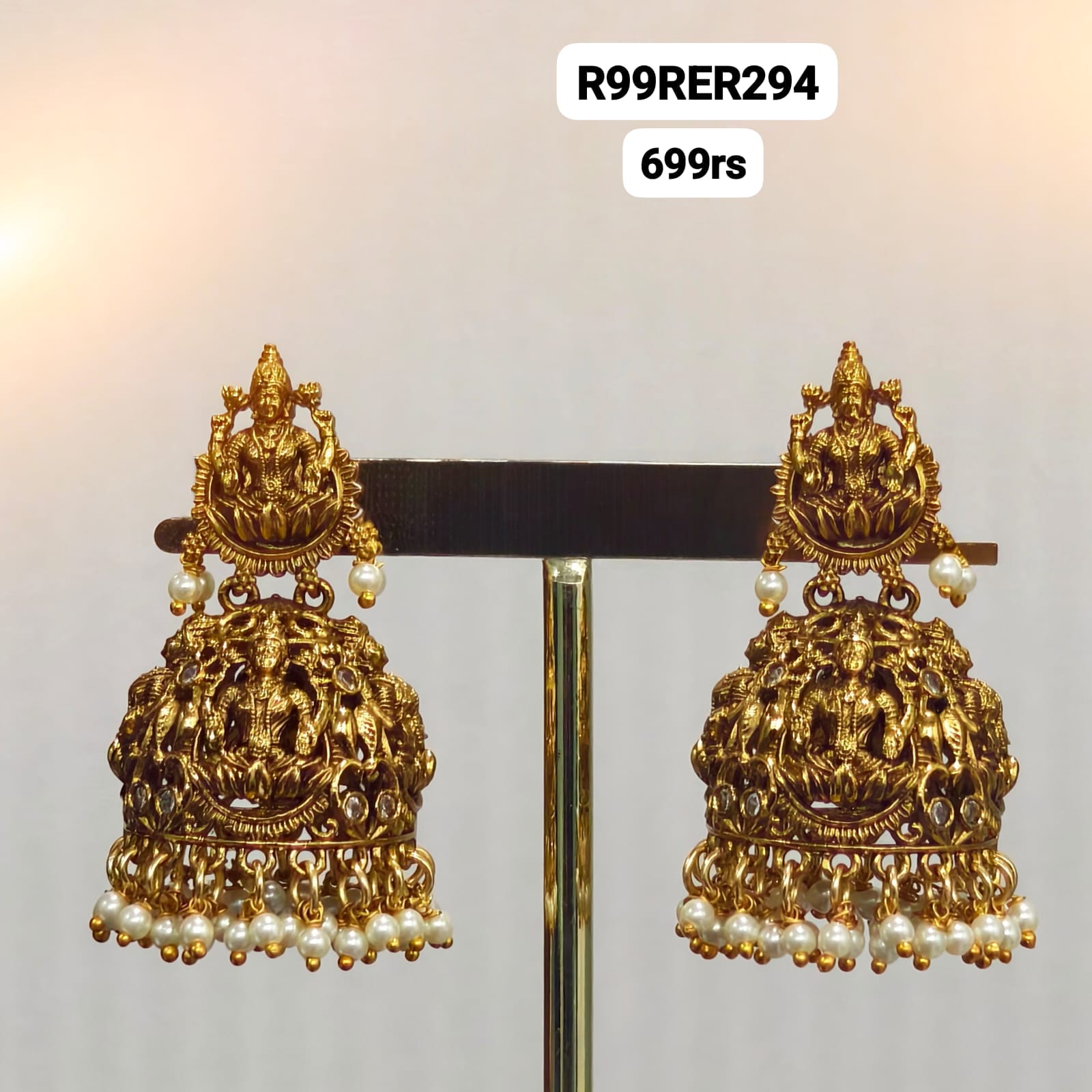 Pushback earrings.down full of pearls. Four side Laxmi ammavaru design.