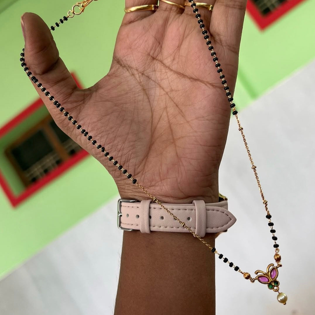 Butterfly pendant black beads with beautiful design and 16 inches length.