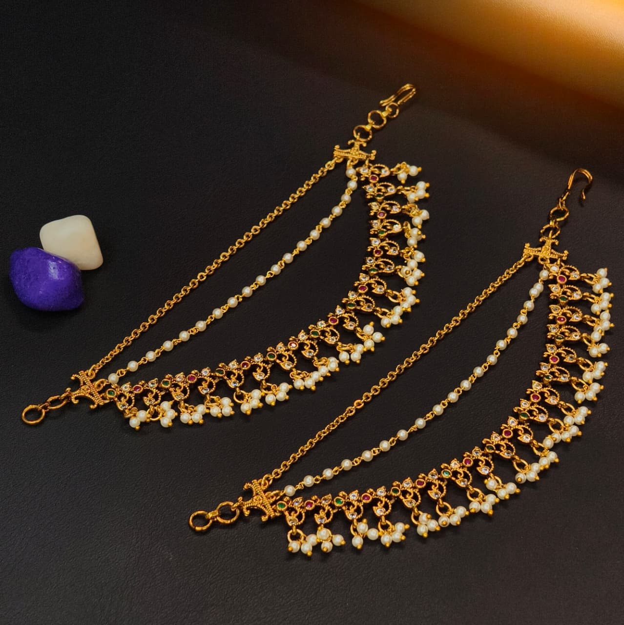 Gold line and muthyalu combination Chempaswaralu.one chain one pearl and gold pattern design.