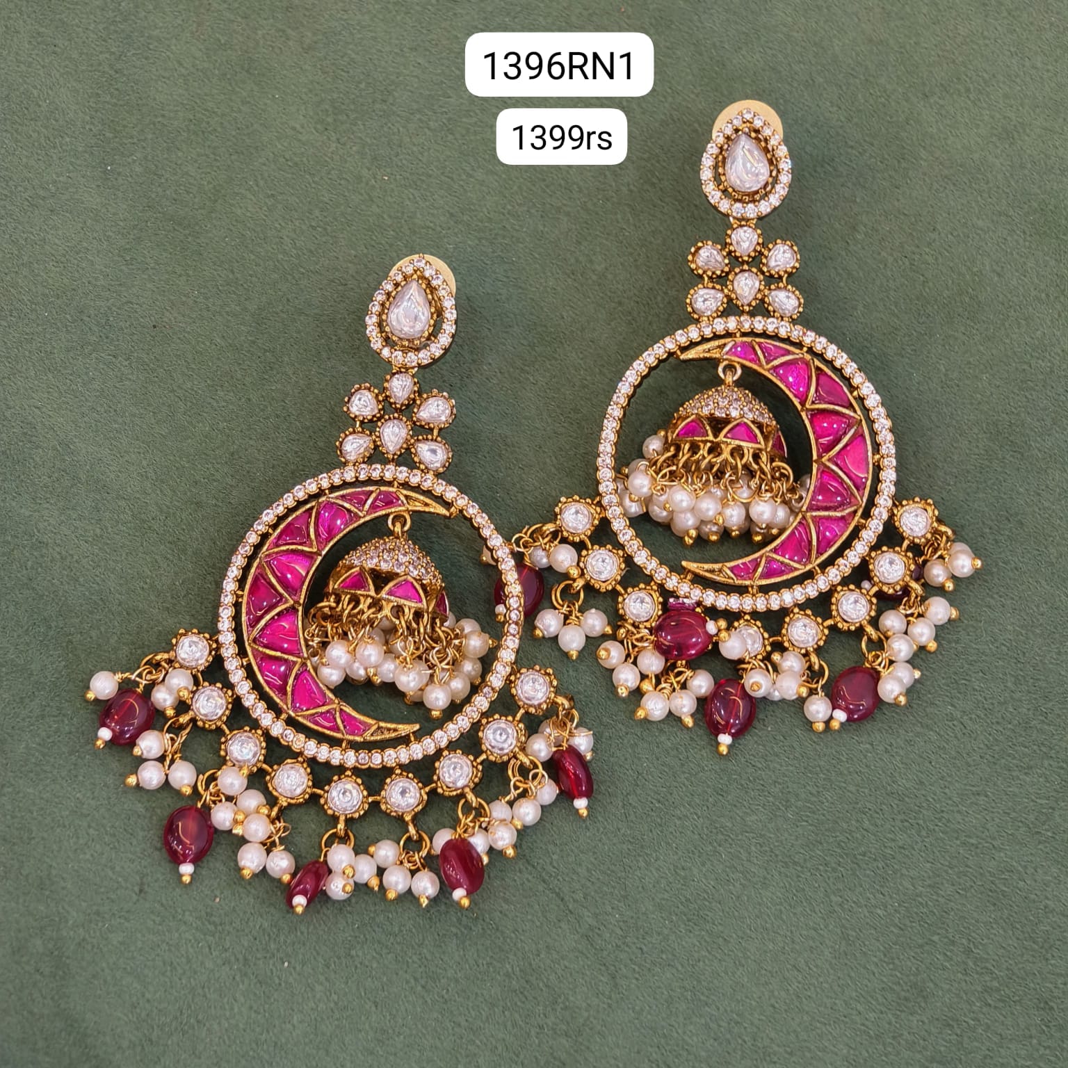 Beautiful new pattern chandbali earrings pink and white stone combination.for occasions and functions.