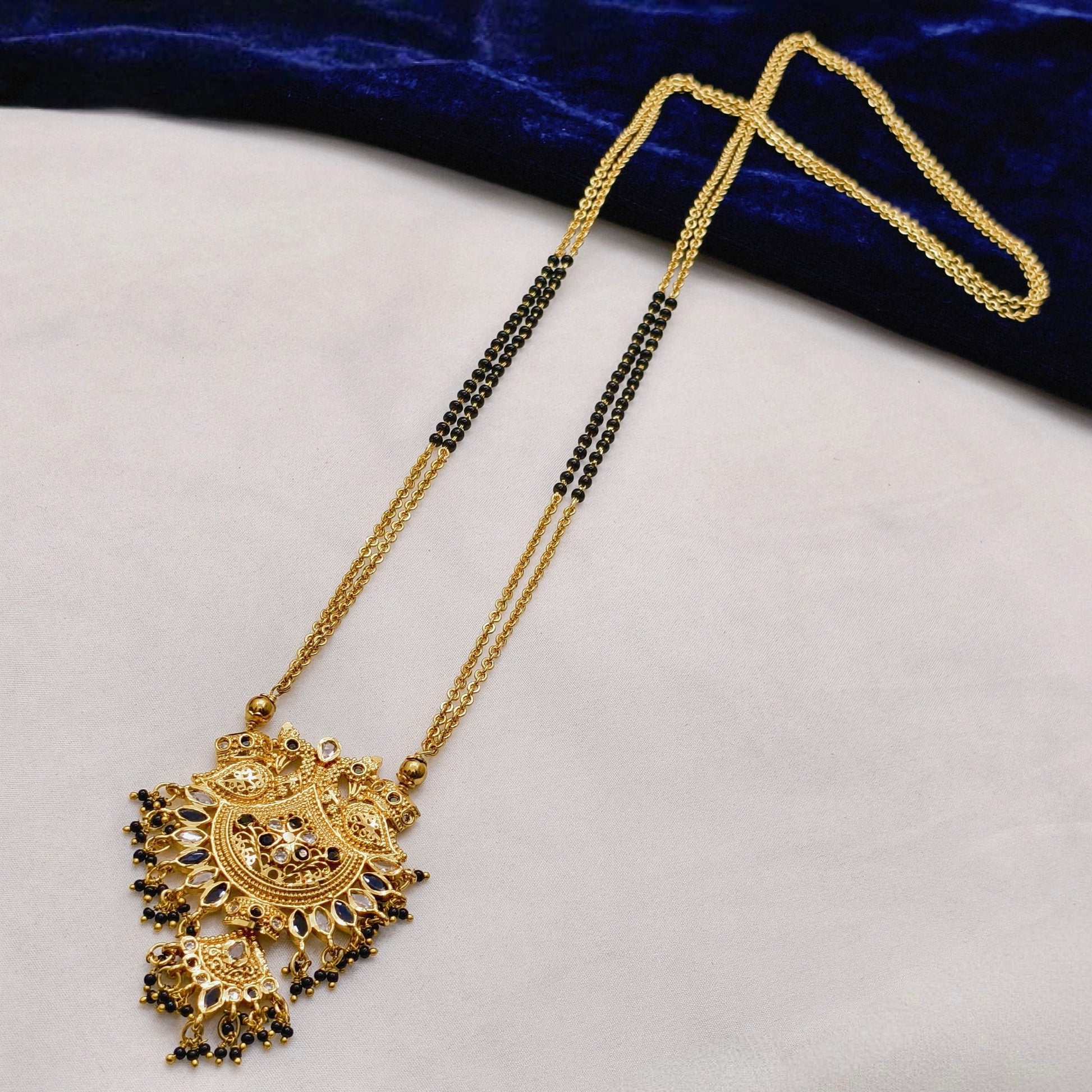 Beautiful long black beads. combination of black beads & chandraharam.New pattern.handmade jewellery.