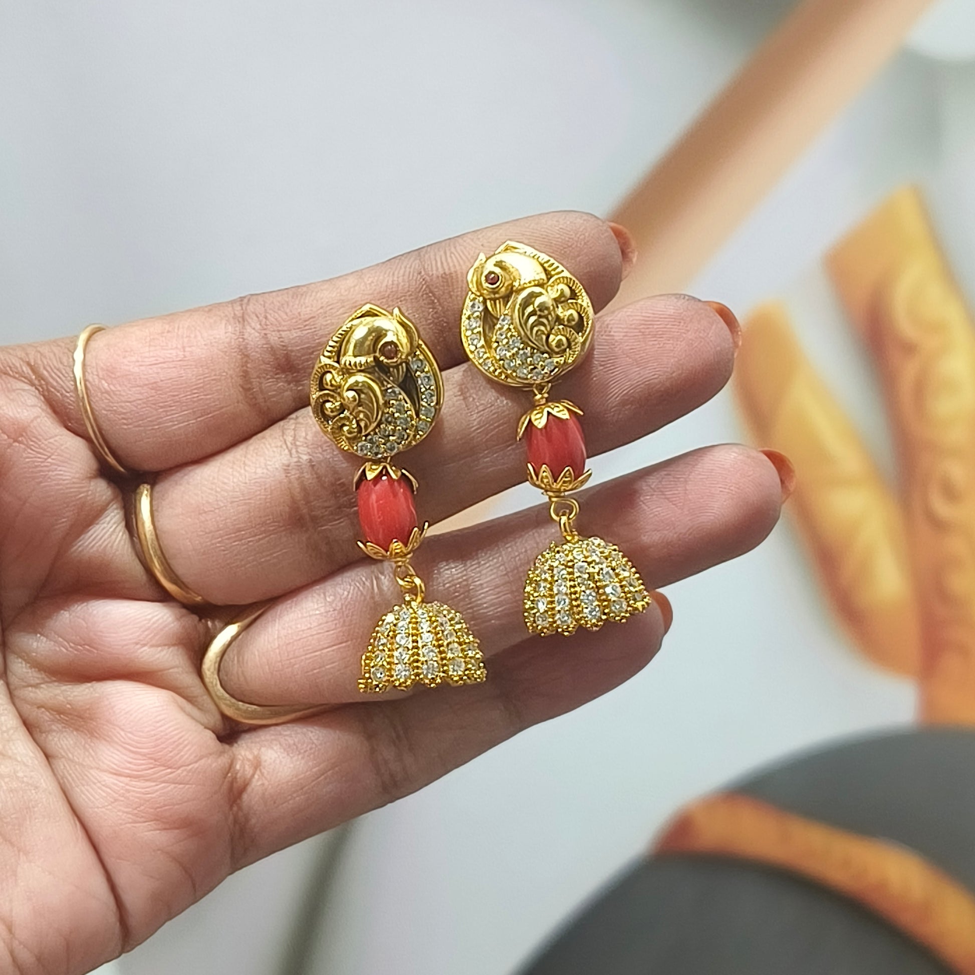 Nakshi finishing studs with coral beads designed earings . Back side push back available