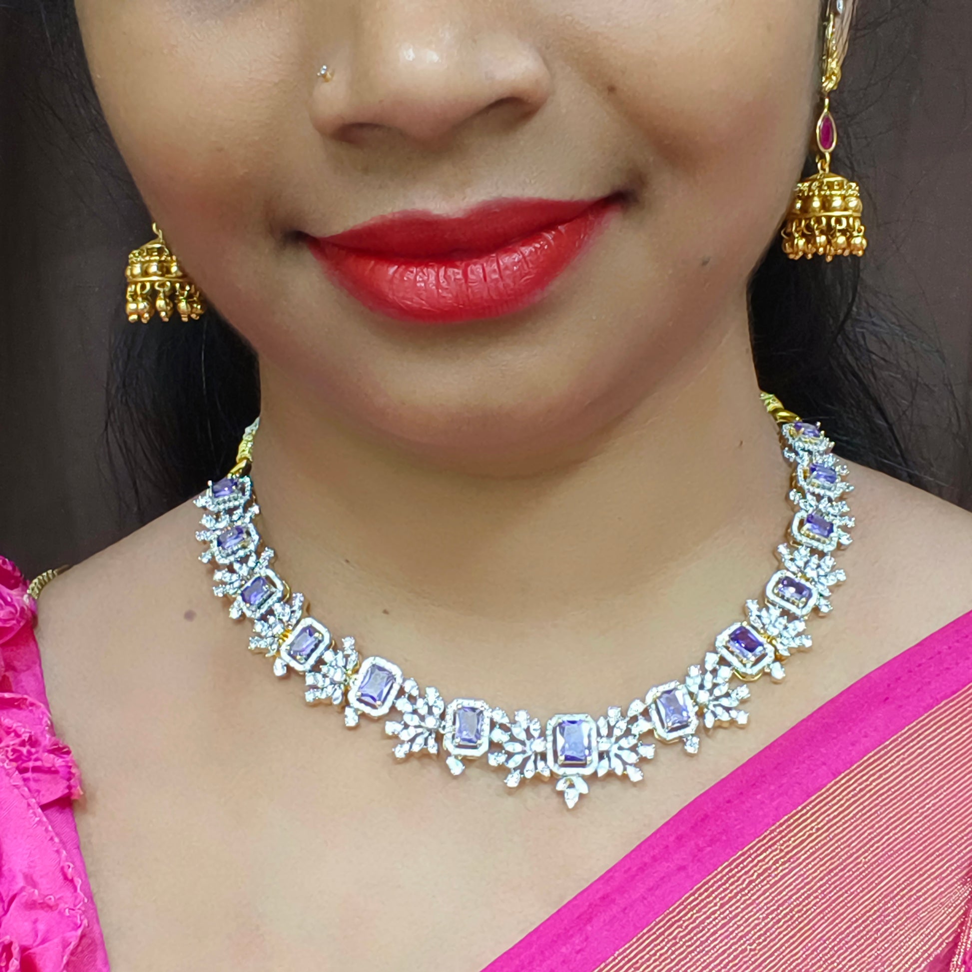 Purple colour stone diamond Neckset. Cute and beautiful neckset.