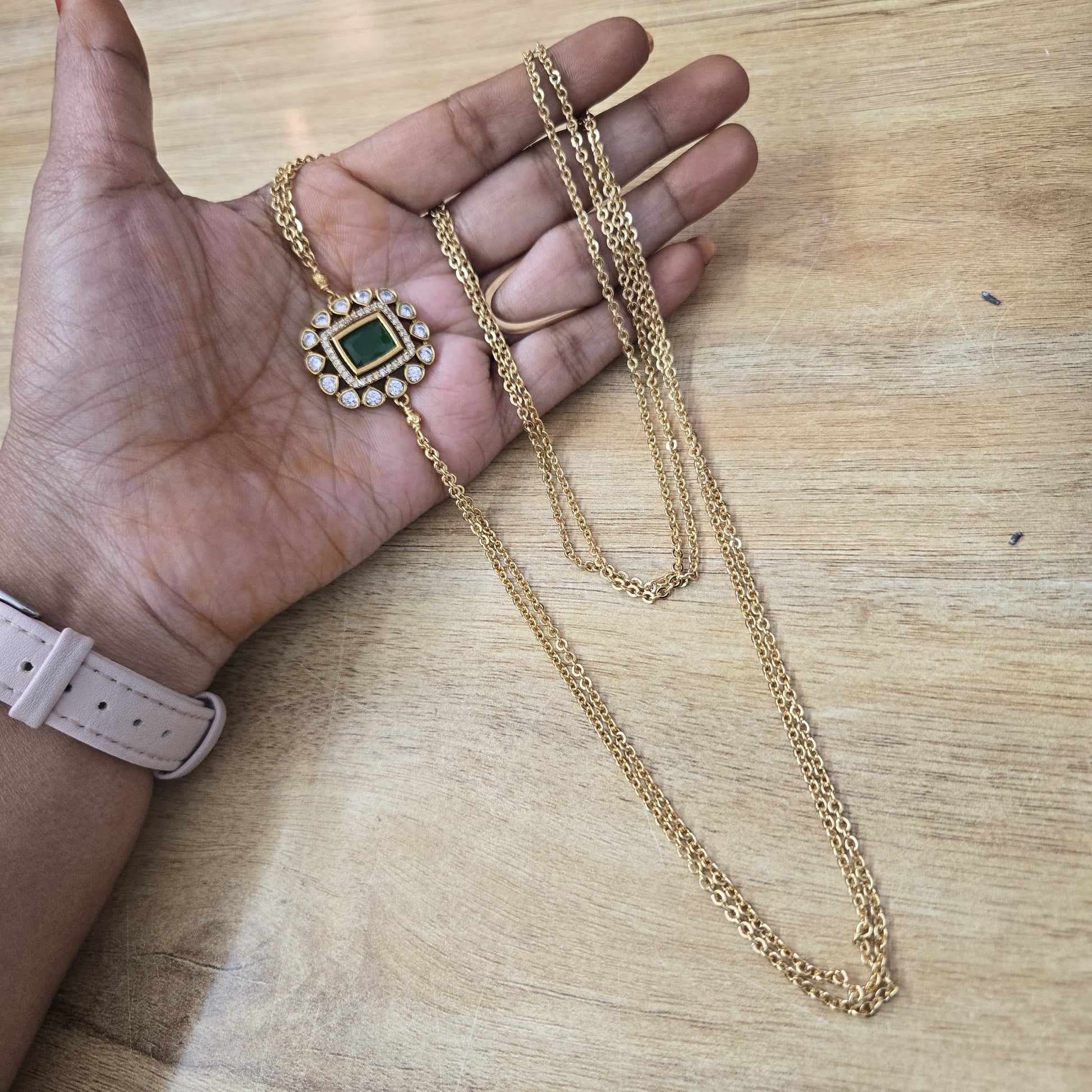 Double line chandraharam with rectangle shape side broche with micro gold plated