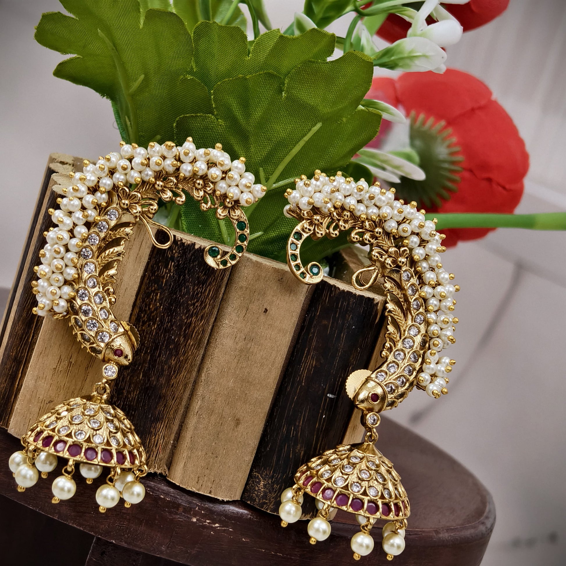 New pattern Earr cuffs.pink and white stone combination with gutthi pusalu.