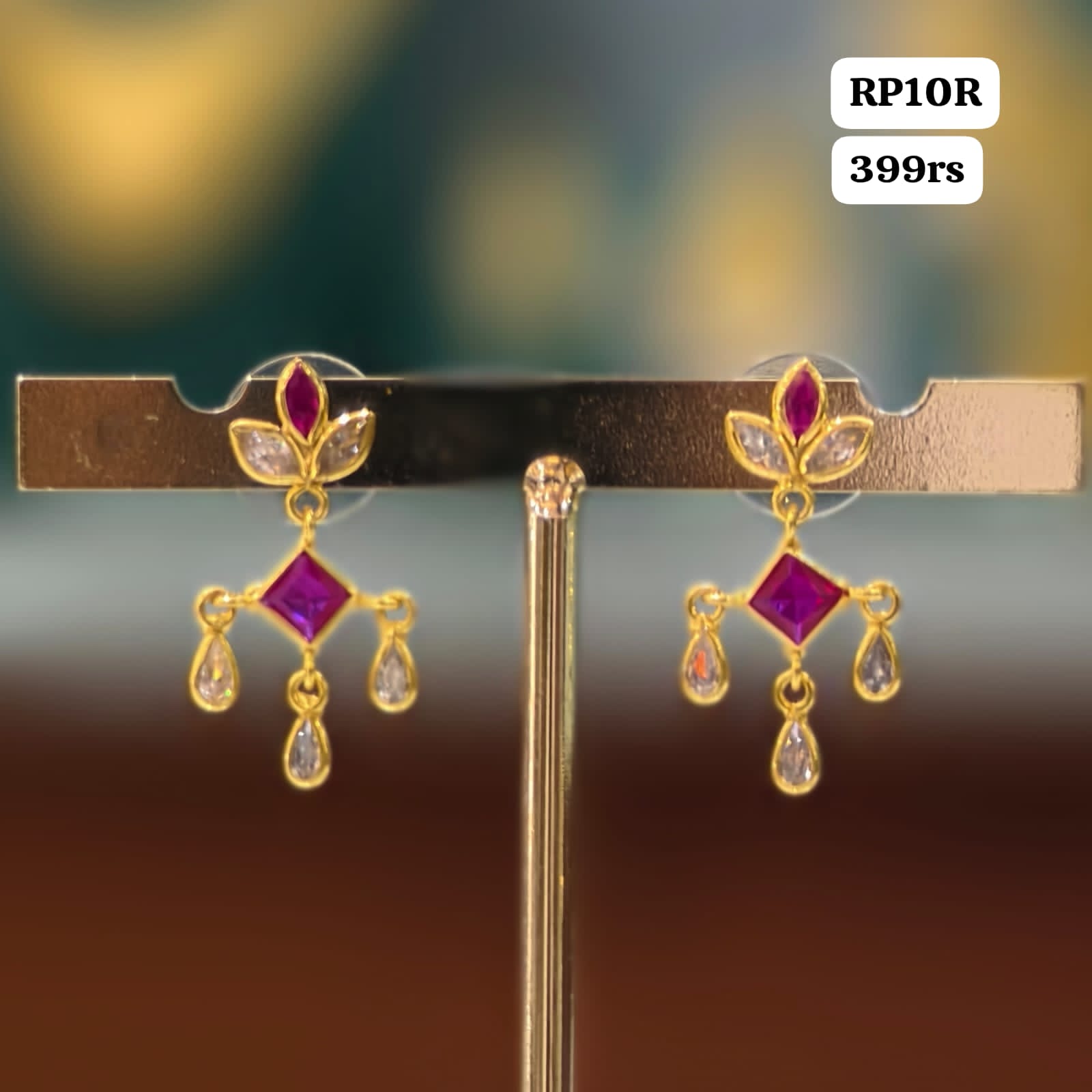Elegant ruby-stone floral drop earrings with sparkling Replika earrings— perfect for a graceful traditional look. ✨