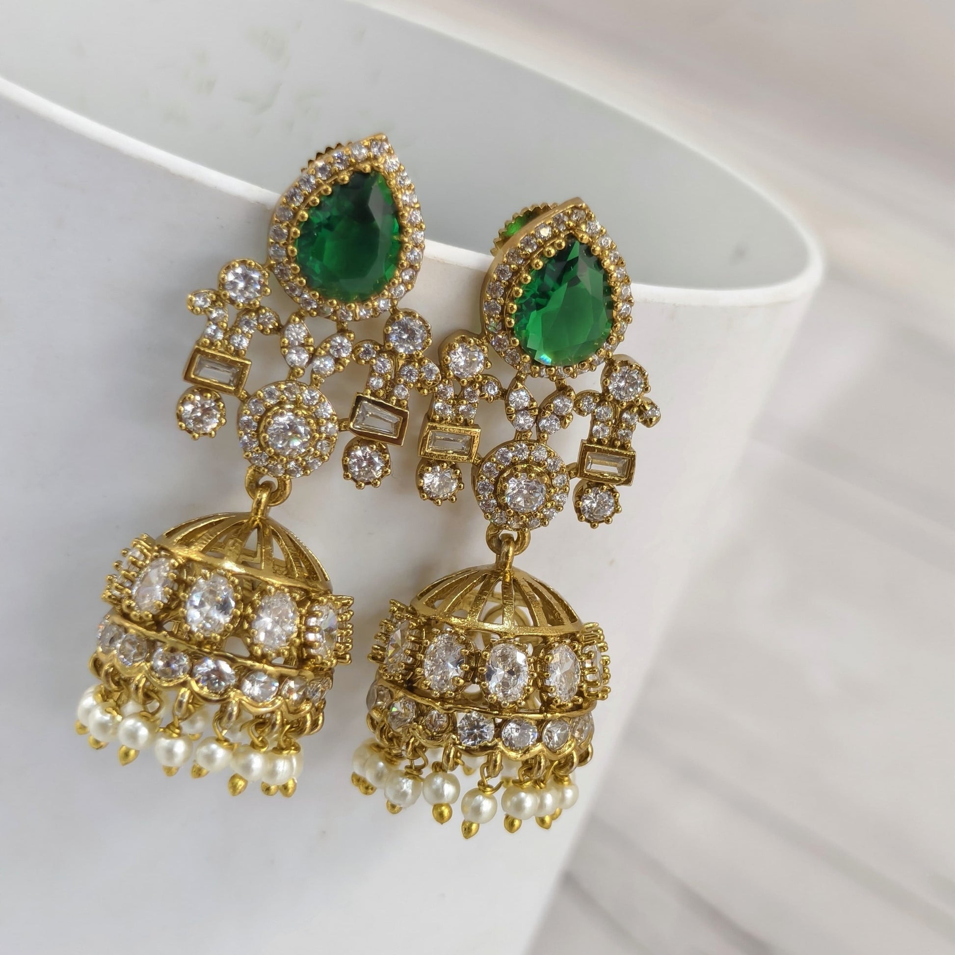 New pattern Butta Earrings.green kundan shape stud with white stones Butta.simple and elegant look.For parties