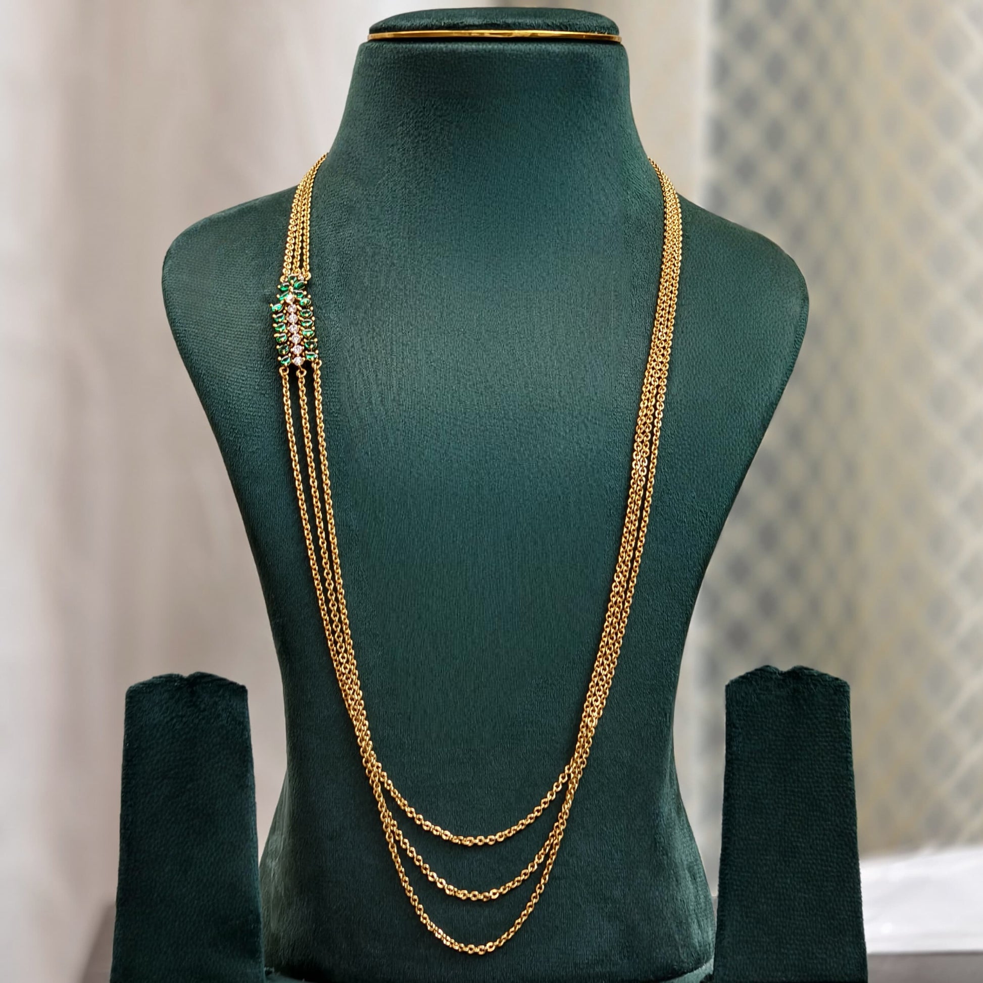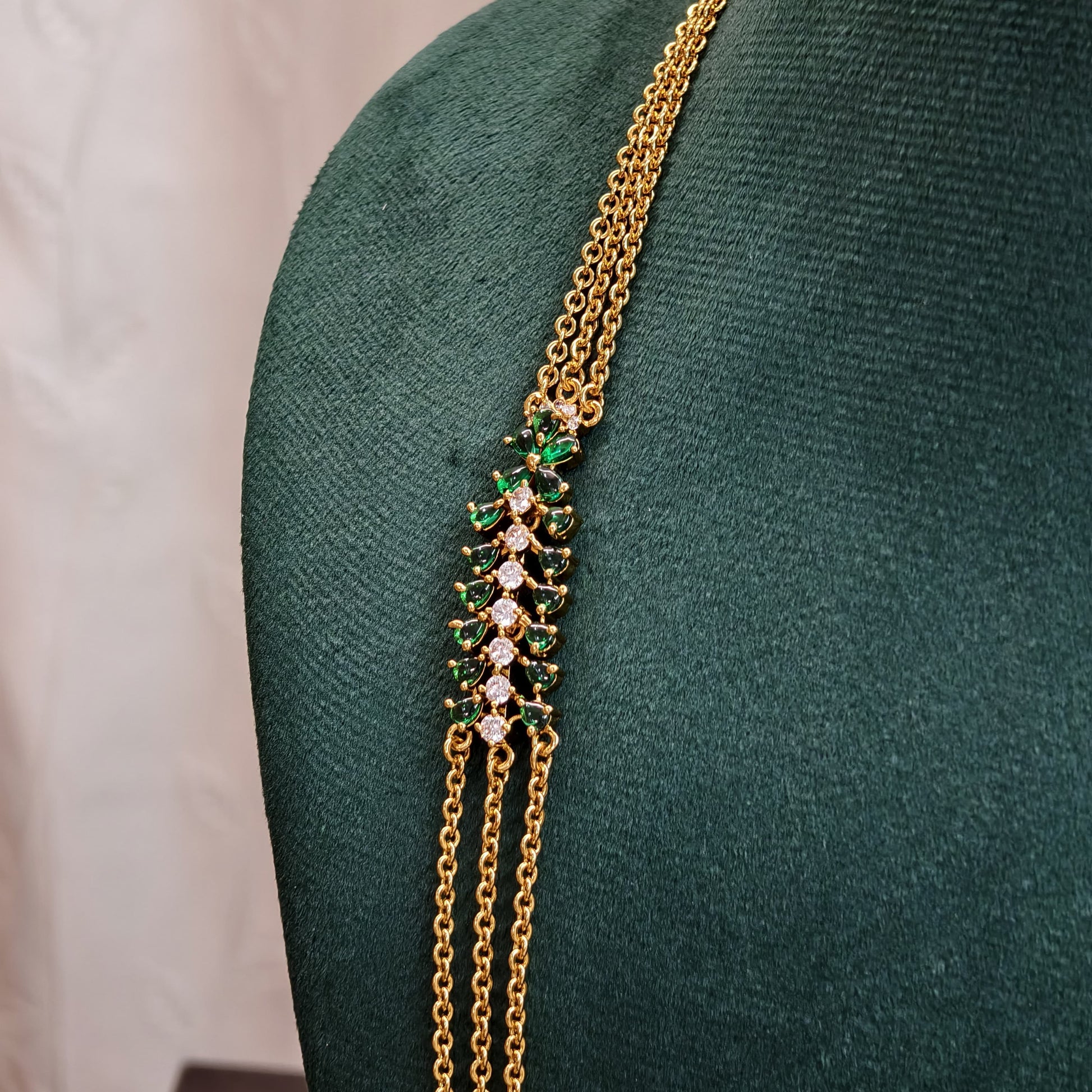 Green (pachhalu) and white stone combination pendant with 3 lines of chandraharam.something modern type.