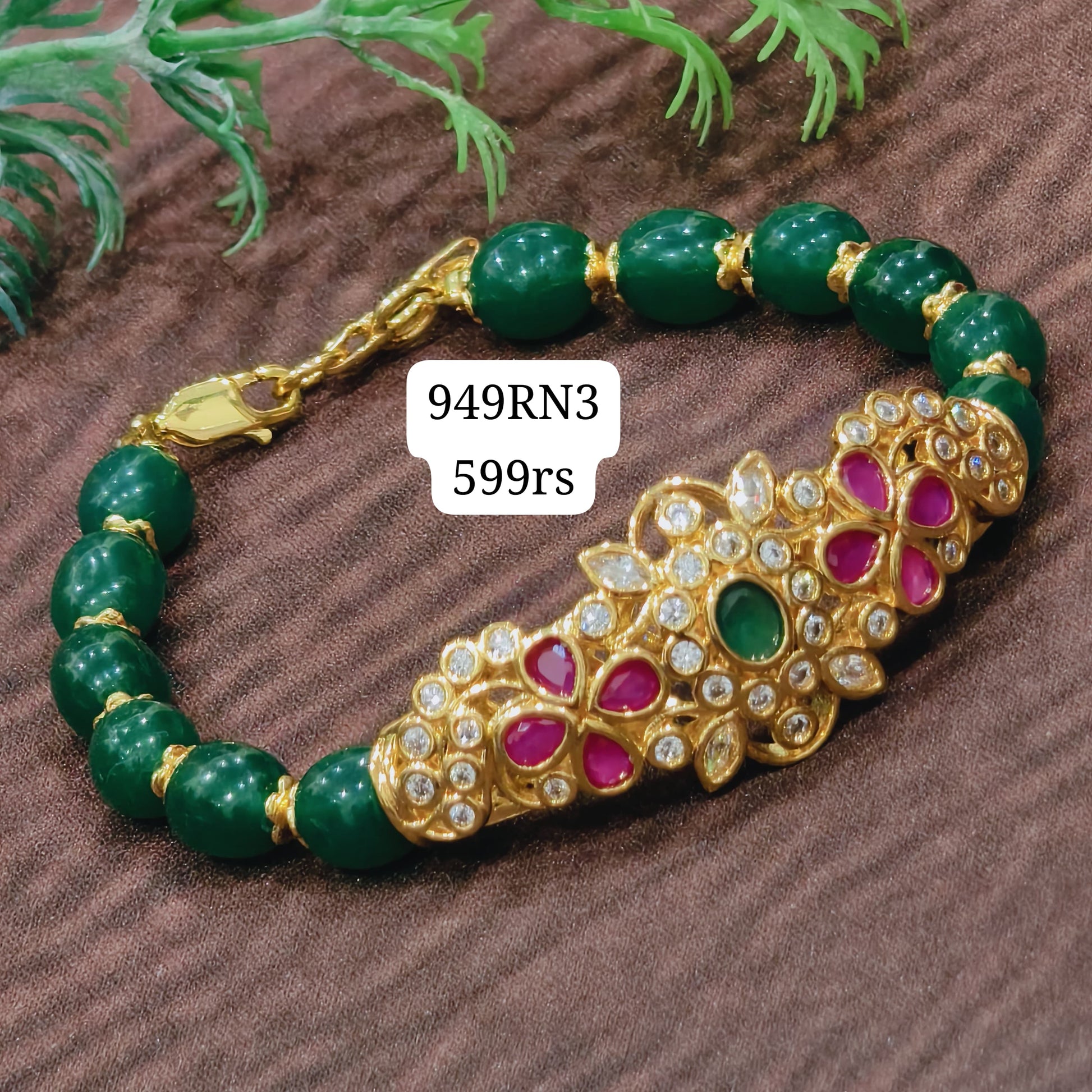 Green beads bracelet with flower pattern pendant.simple and n look.