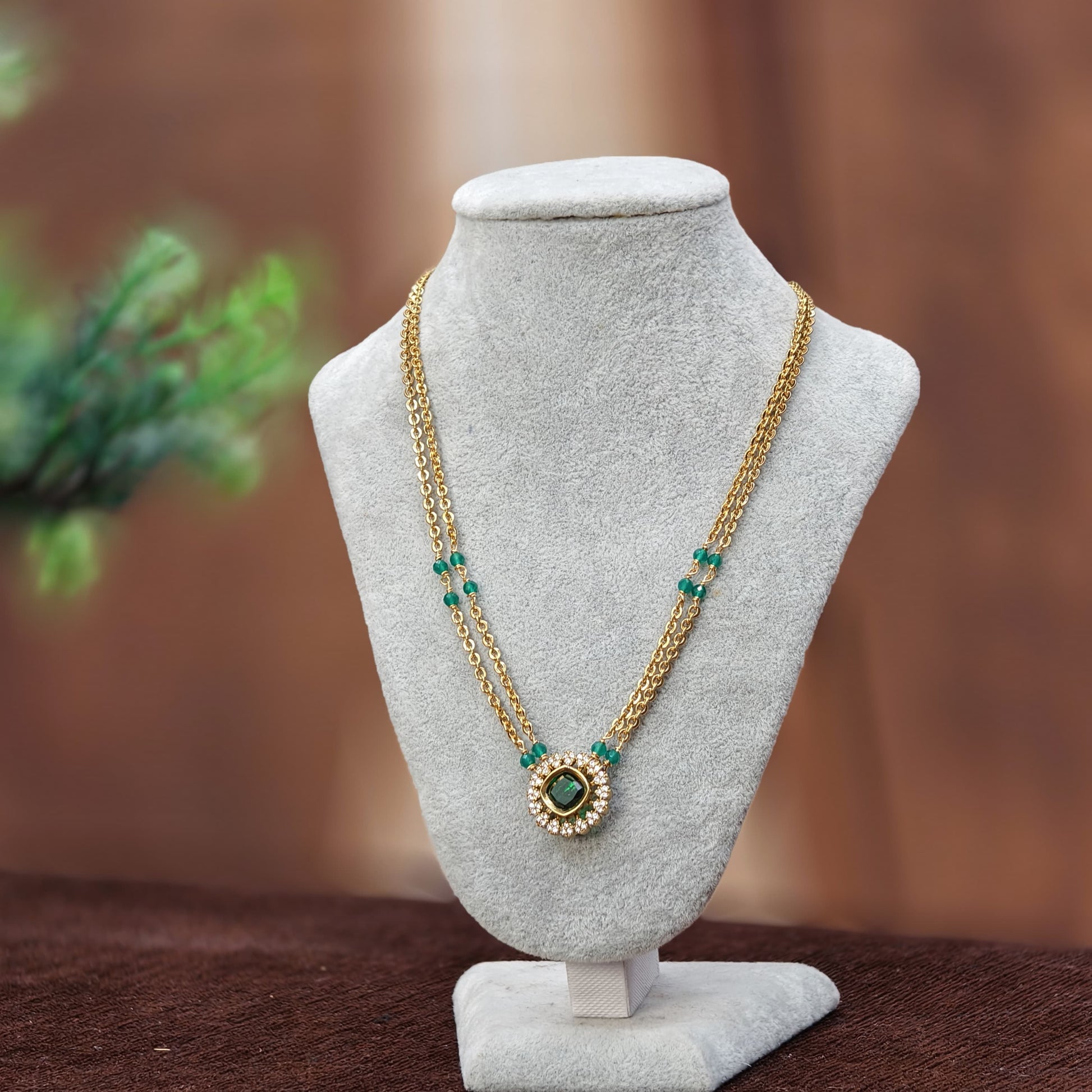 2lines chandraharam with green beads.along with greenstone pendant.fancy type.