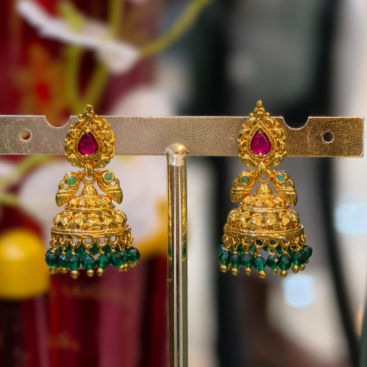Micro gold finishing green beads butta Earrings.medium in size.back side push back.