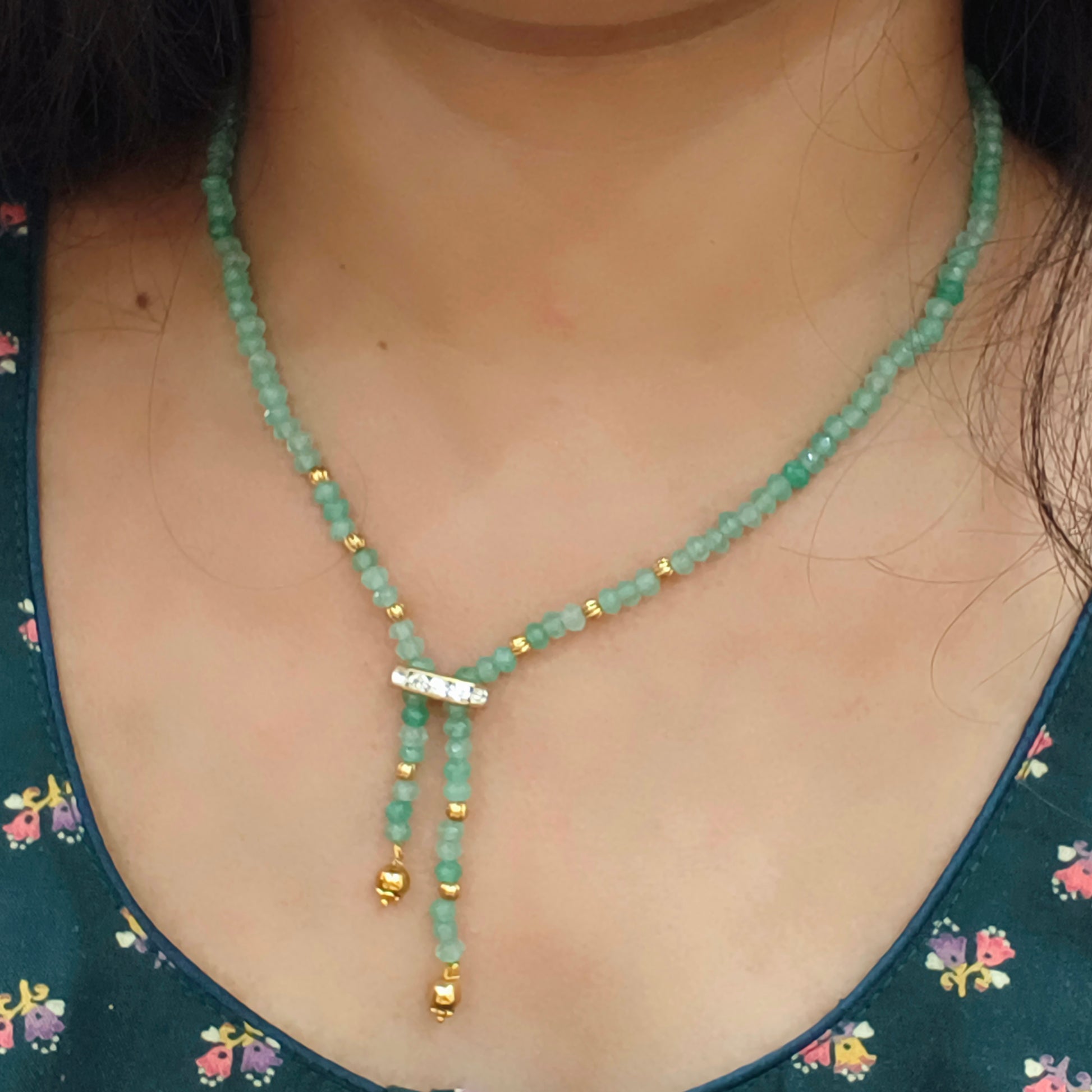 Beautiful handmade product with green and gold combination. And at the bottom added uncuts pendant.