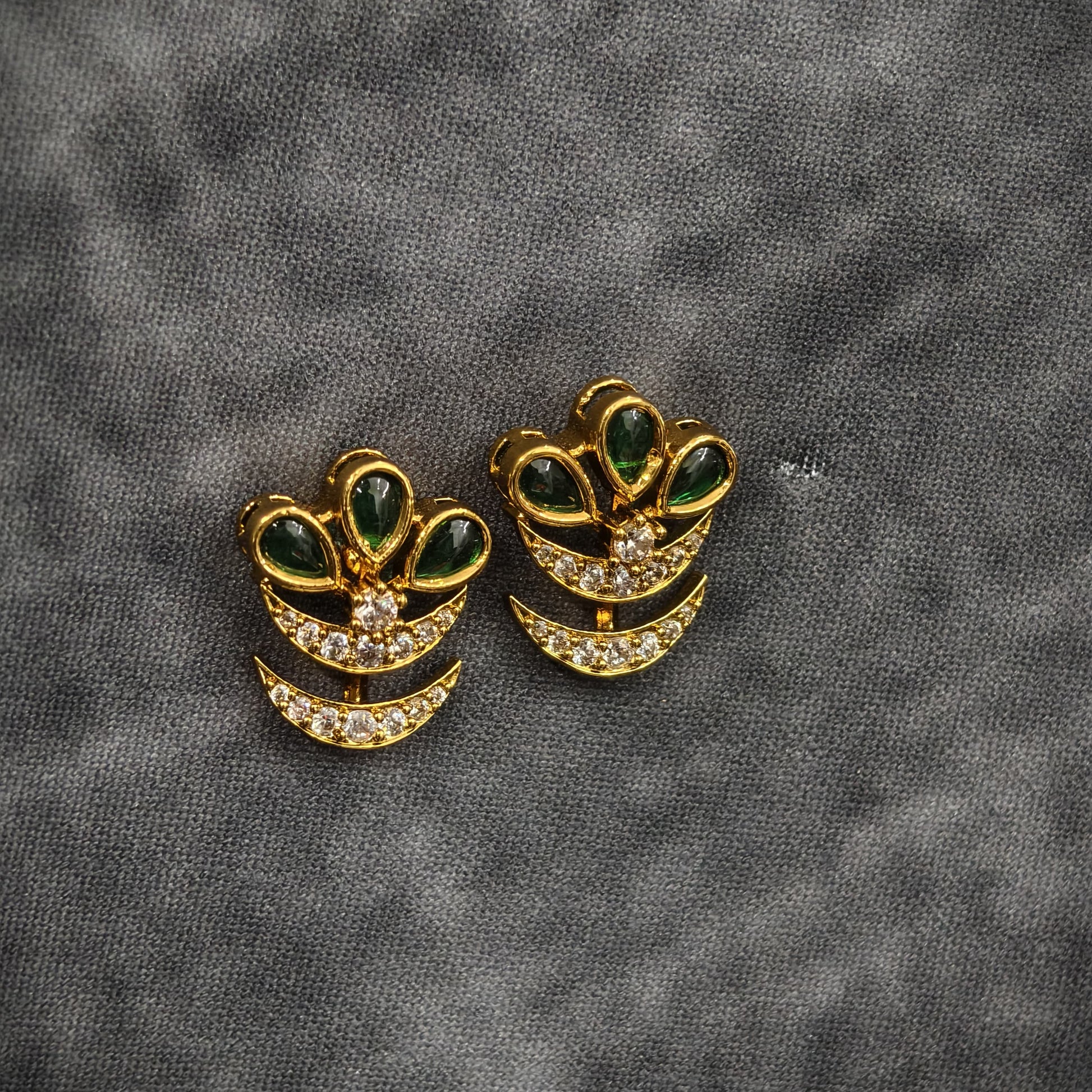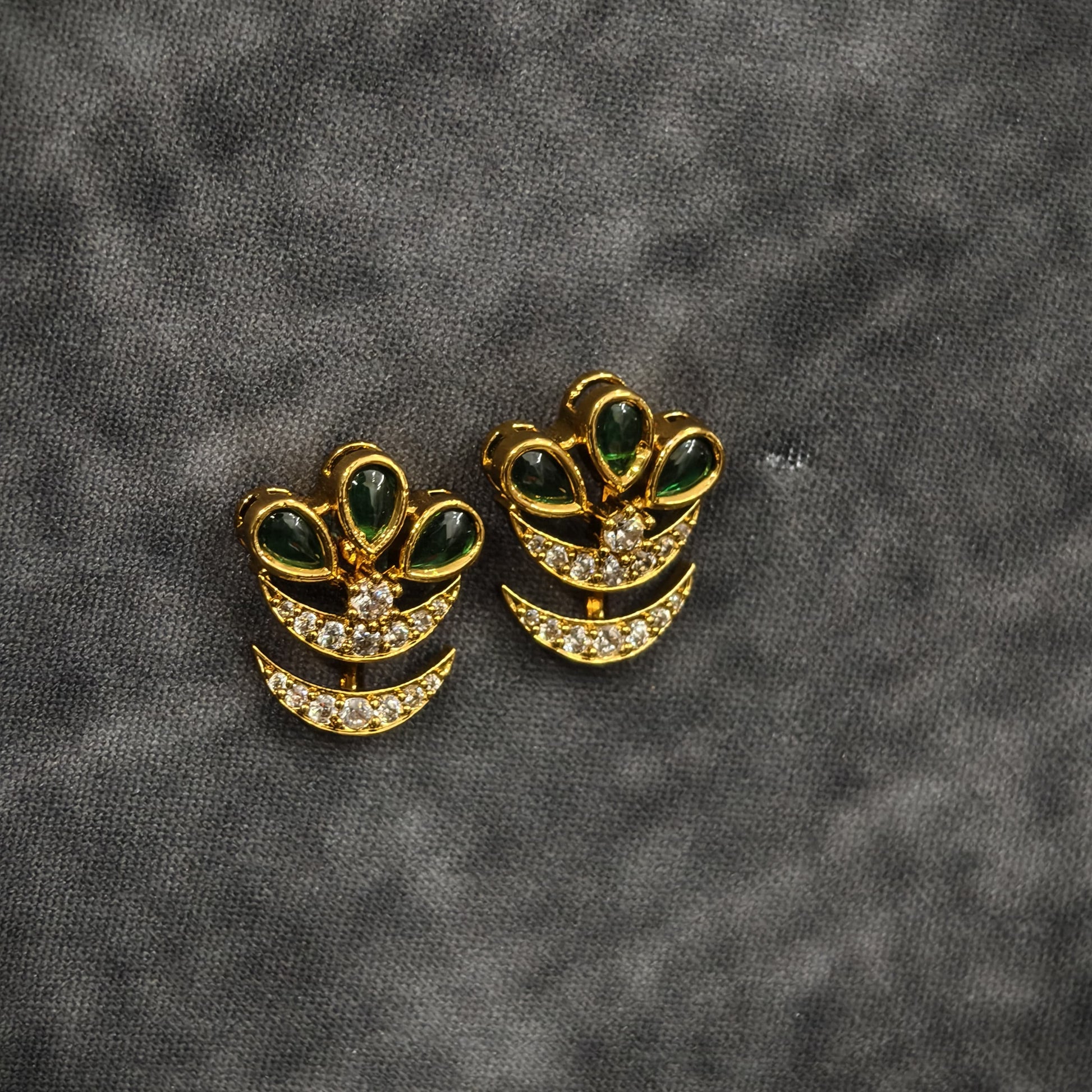 Moon shape studs with green stone drops.simple and elegant look.during function and parties etc..budget friendly.