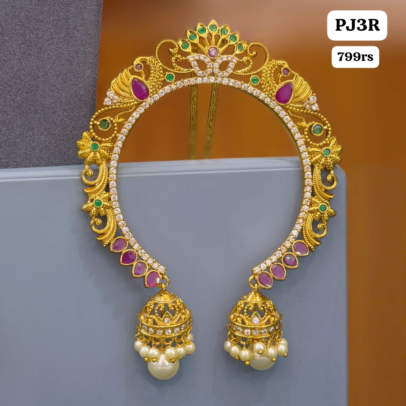 Elegant temple-styleJada billa with ruby, green stones and sparkling white crystals.Adds a grand traditional touch to your perfect for weddings and festive looks. ✨