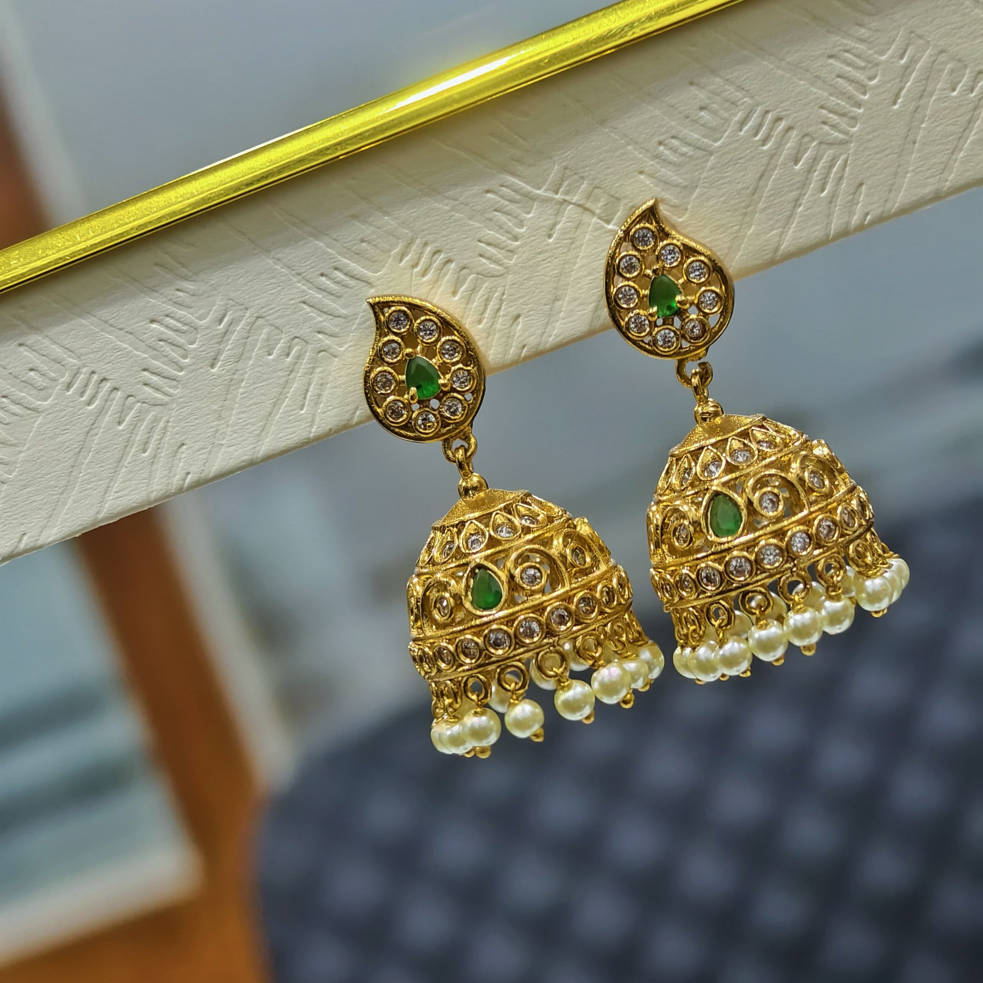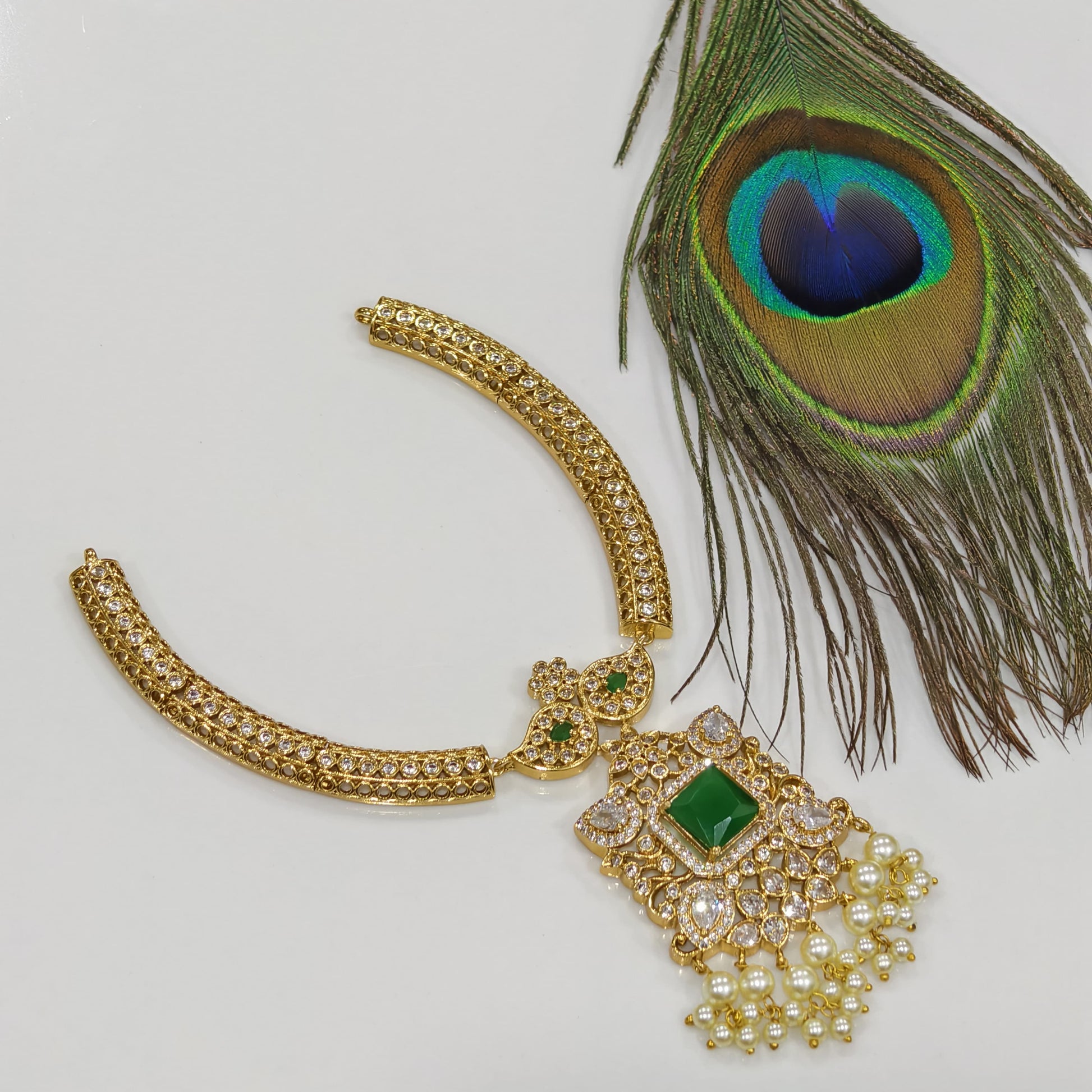 Green and white stone combination kante neck set.with Earrings in butta pattern.