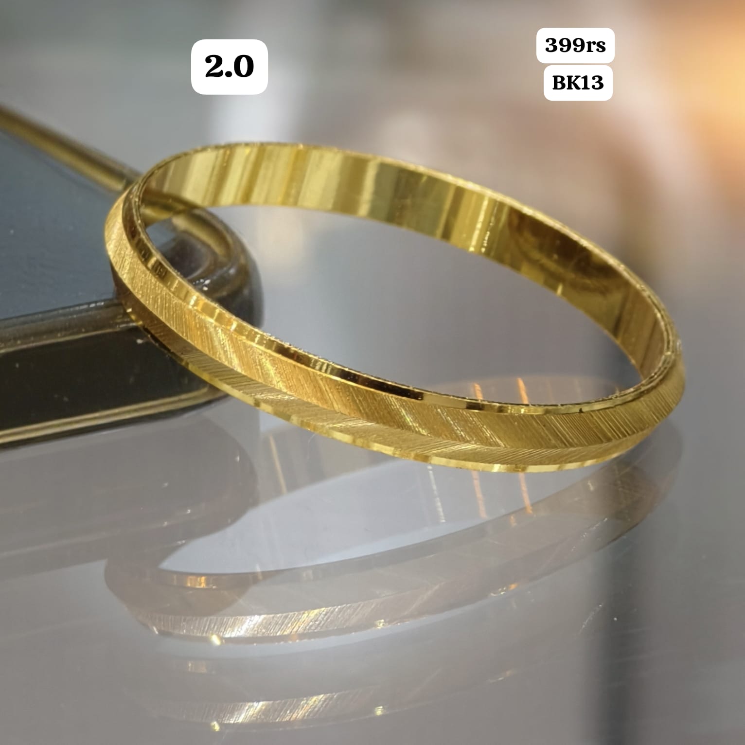 Kids Kada (2.0 size) in lustrous gold finish is an ideal choice for young ones. This traditional bangle combines authentic design with comfortable wearability, crafted to suit smaller wrists perfectly.