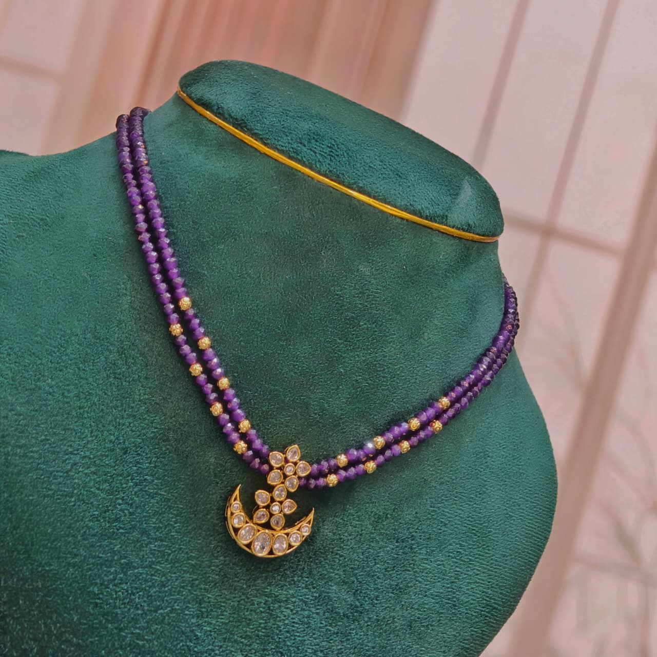 Lavender onex beads short neck piece.with beautiful white stone flower pattern pendant.budget friendly..