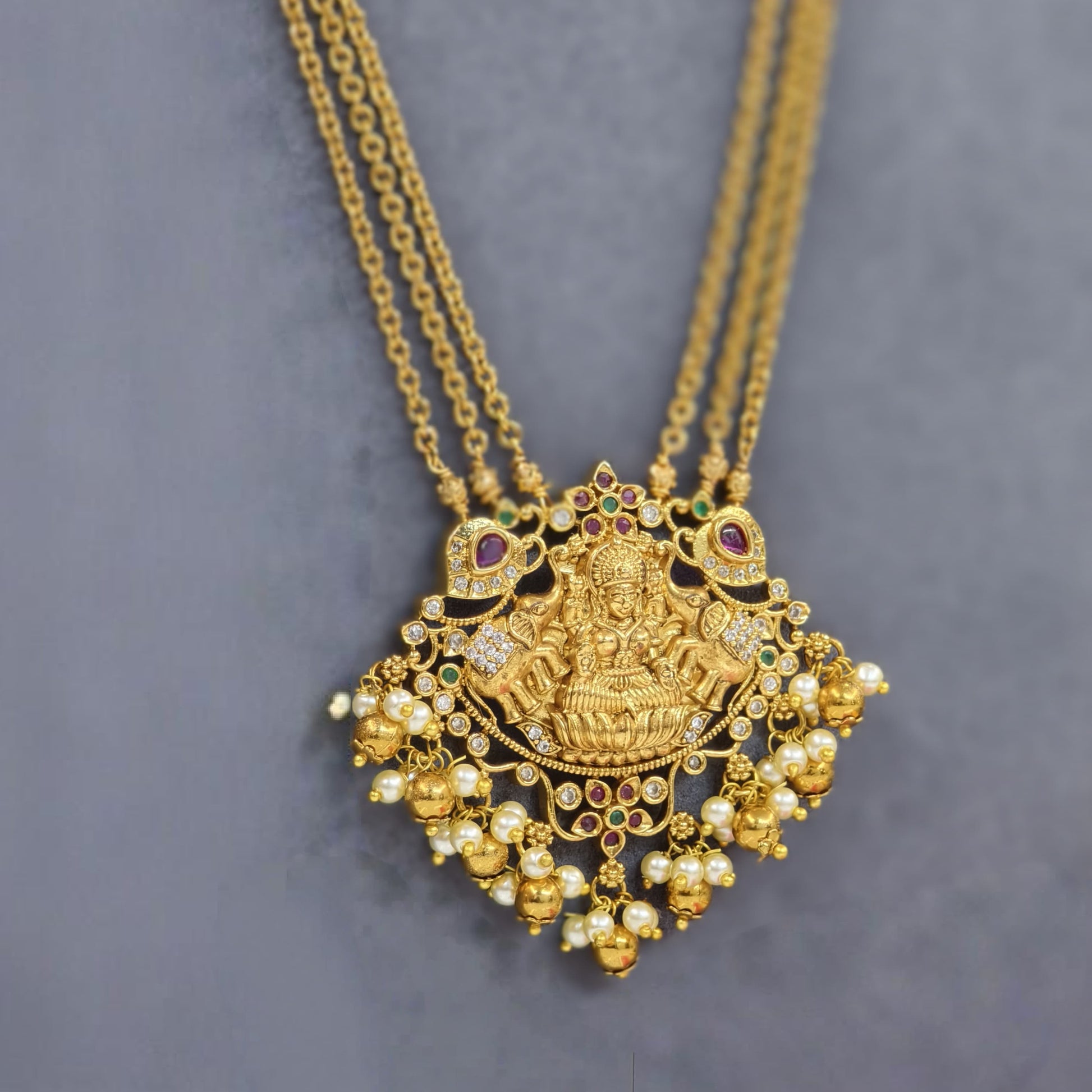 Beautiful Laxmi chandraharam.Nakshi finishing pendant with micro gold plated chandraharam.No age limit.