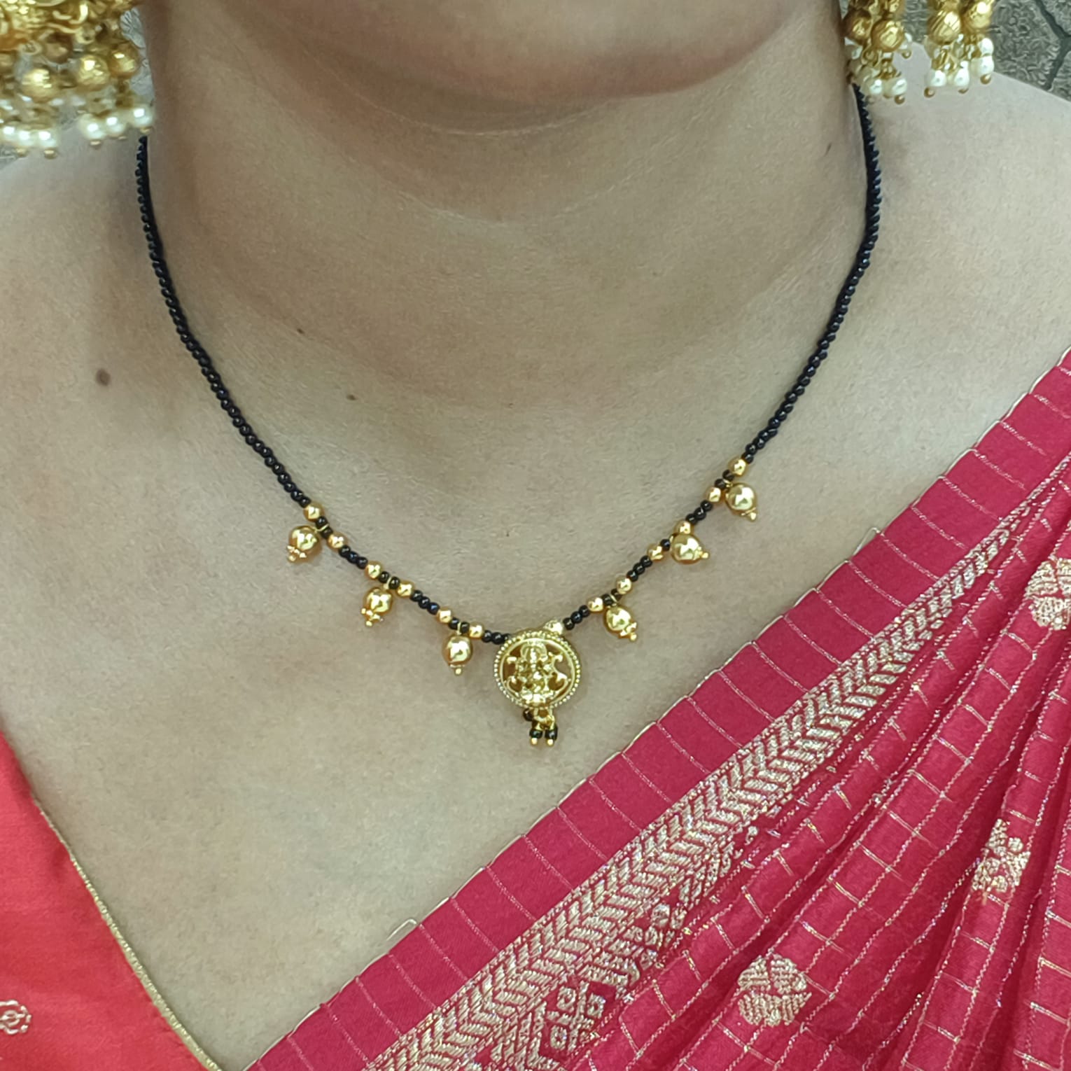 Nakshi finishing black beads with gold model.