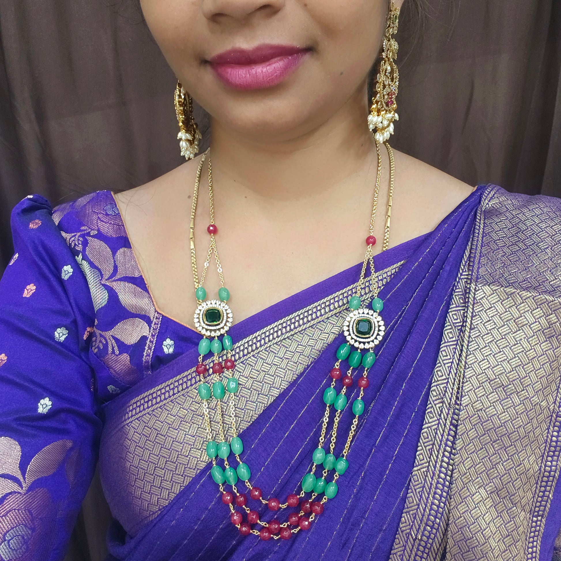 3 layers mala with green and Ruby monalisa beads. 2 sides added quality breaches