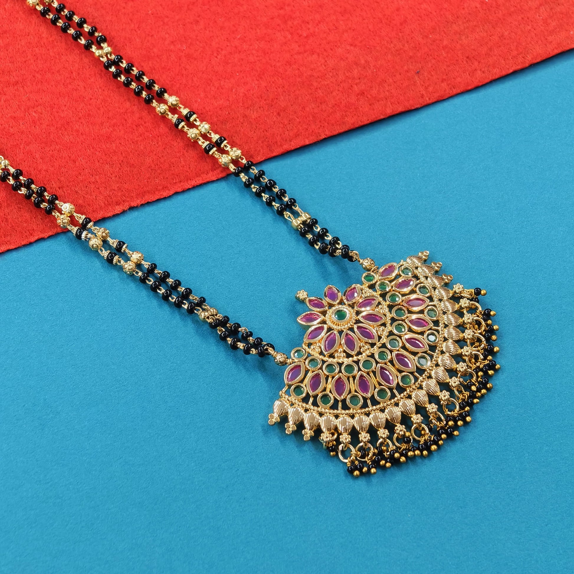Micro gold finishing pendant with long black beads.bottom of the pendant consists black beads.