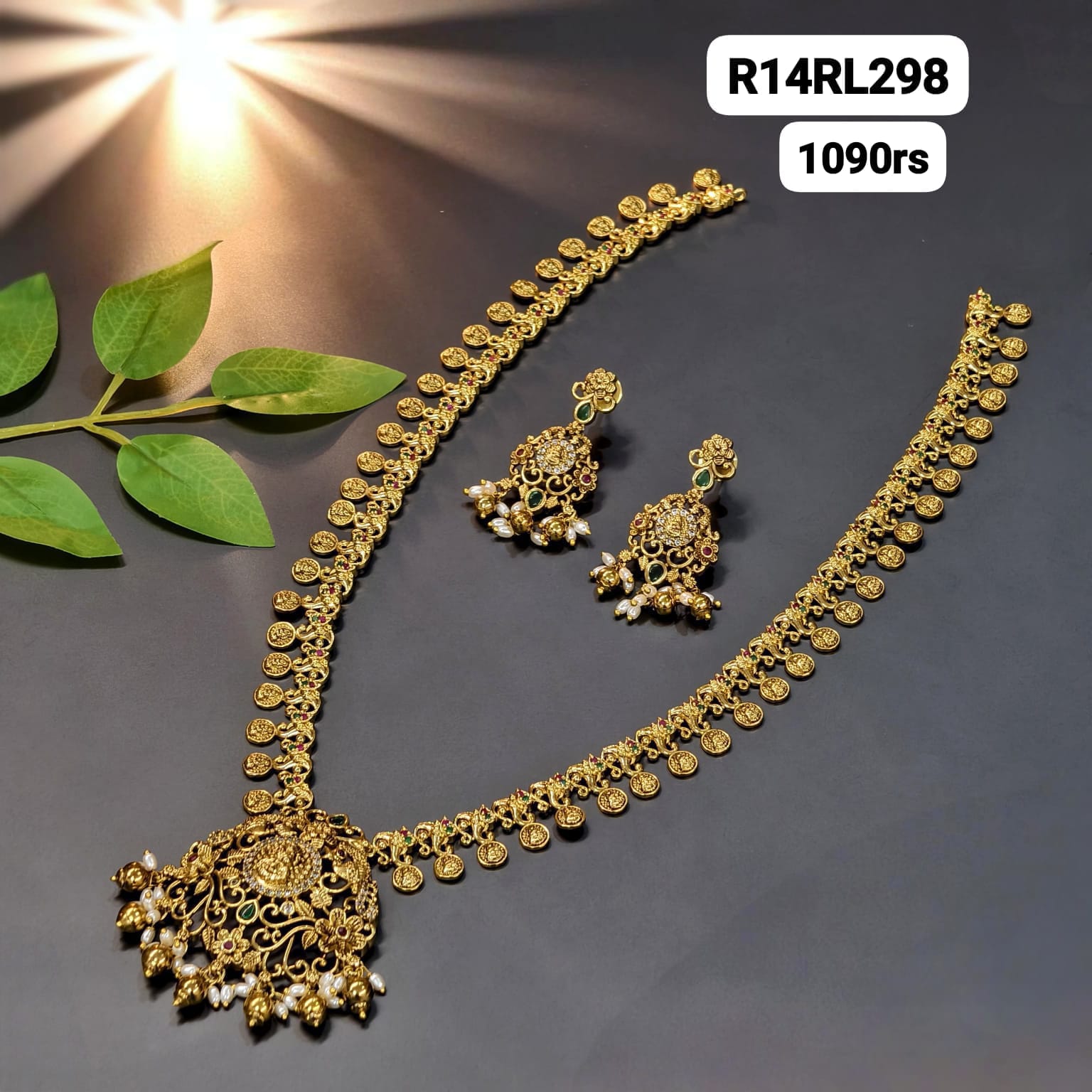 Dollar with Laxmi ammavaru. With side kasulu. Nakshi finishing product. Neat and elegant product. With earrings.