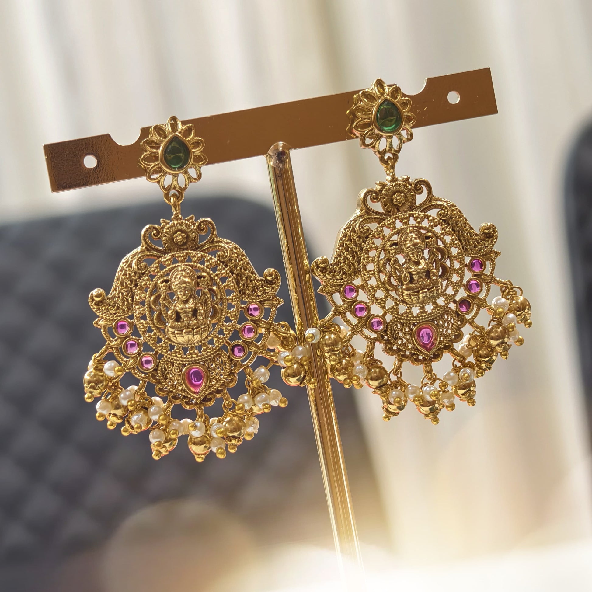 Long haram with kundan's combination.and with chandbali earrings.for weddings and functions.. budget friendly..