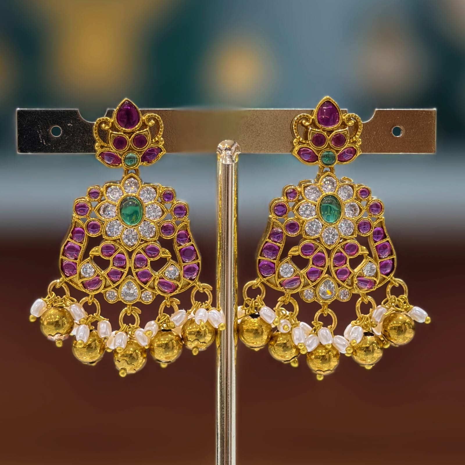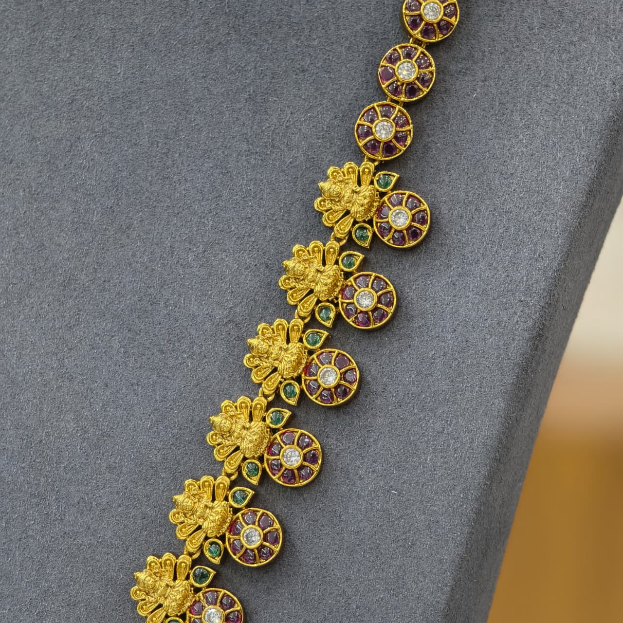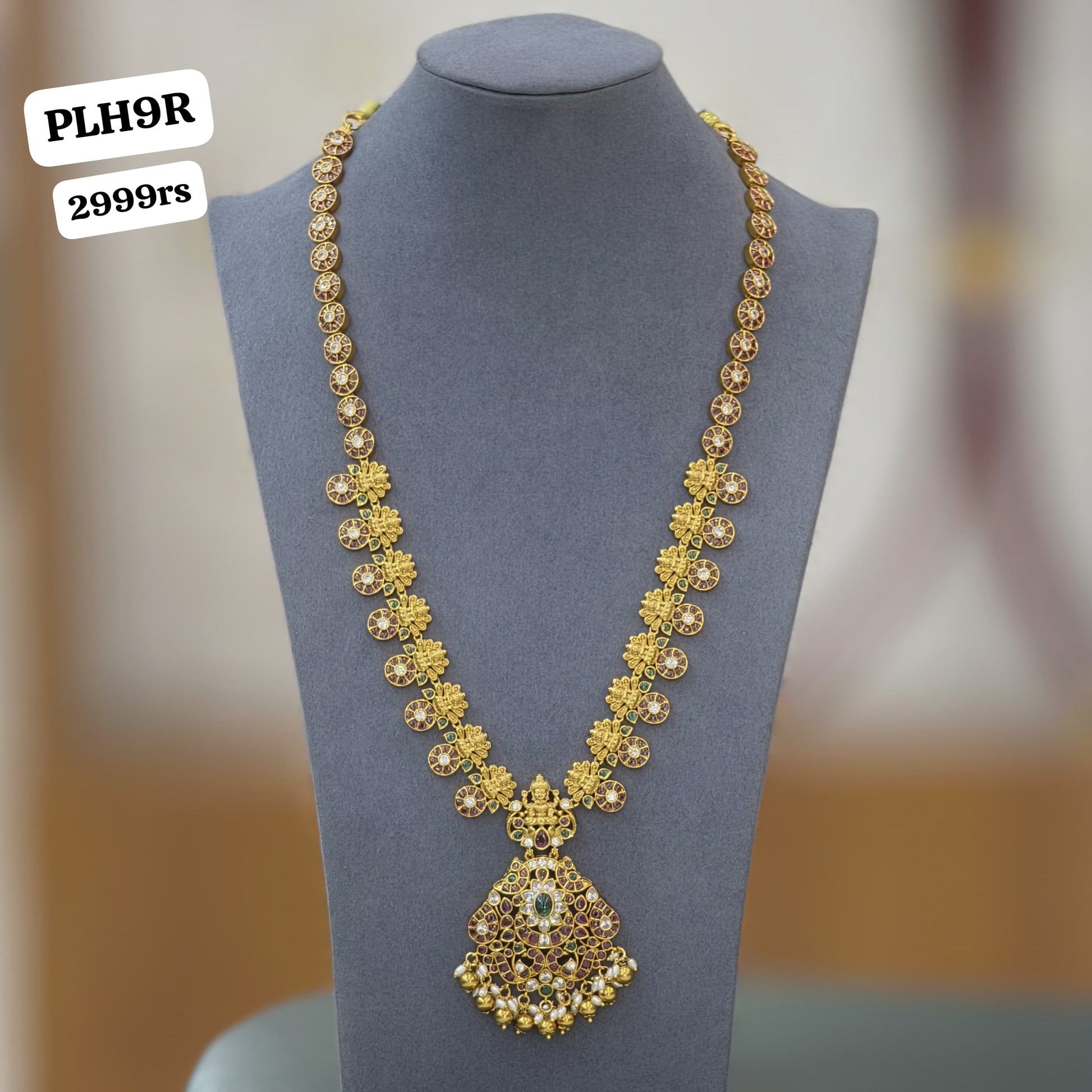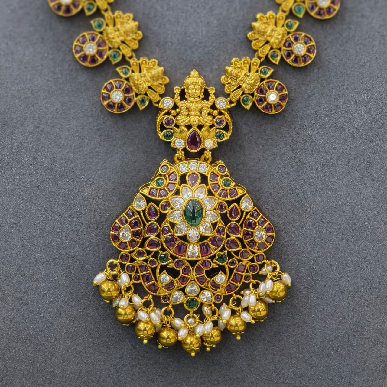 Elegant Lakshmi design long haram with sparkling stones and a beautiful traditional long haram pendant, perfect for festive and bridal looks. ✨