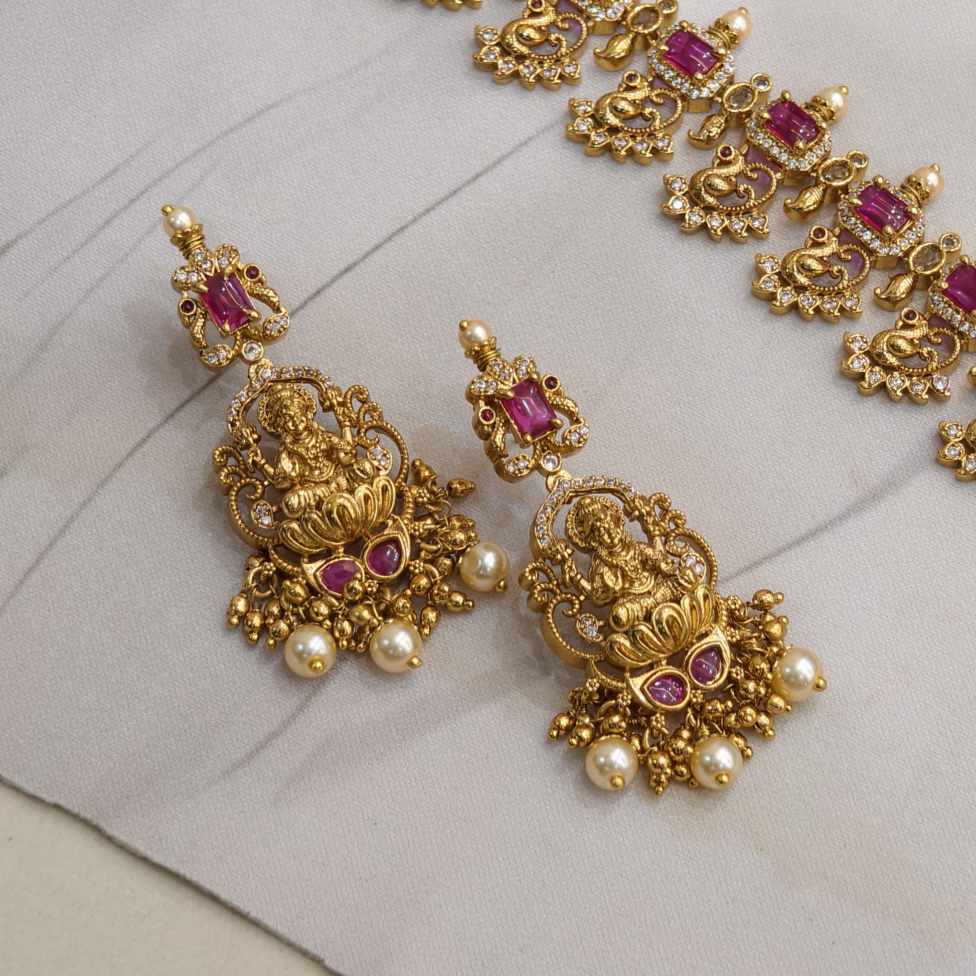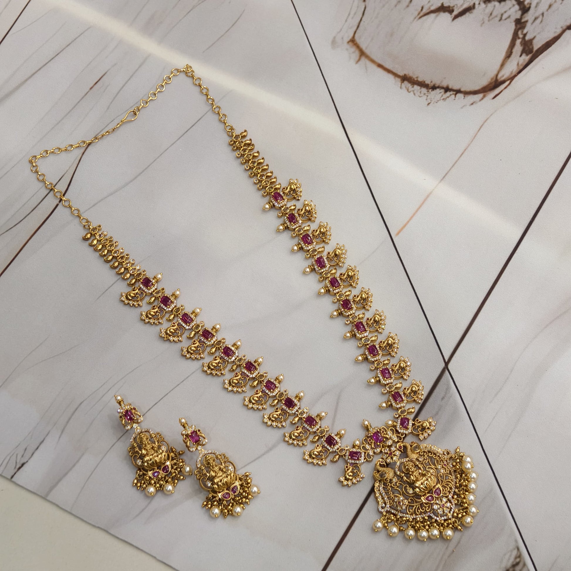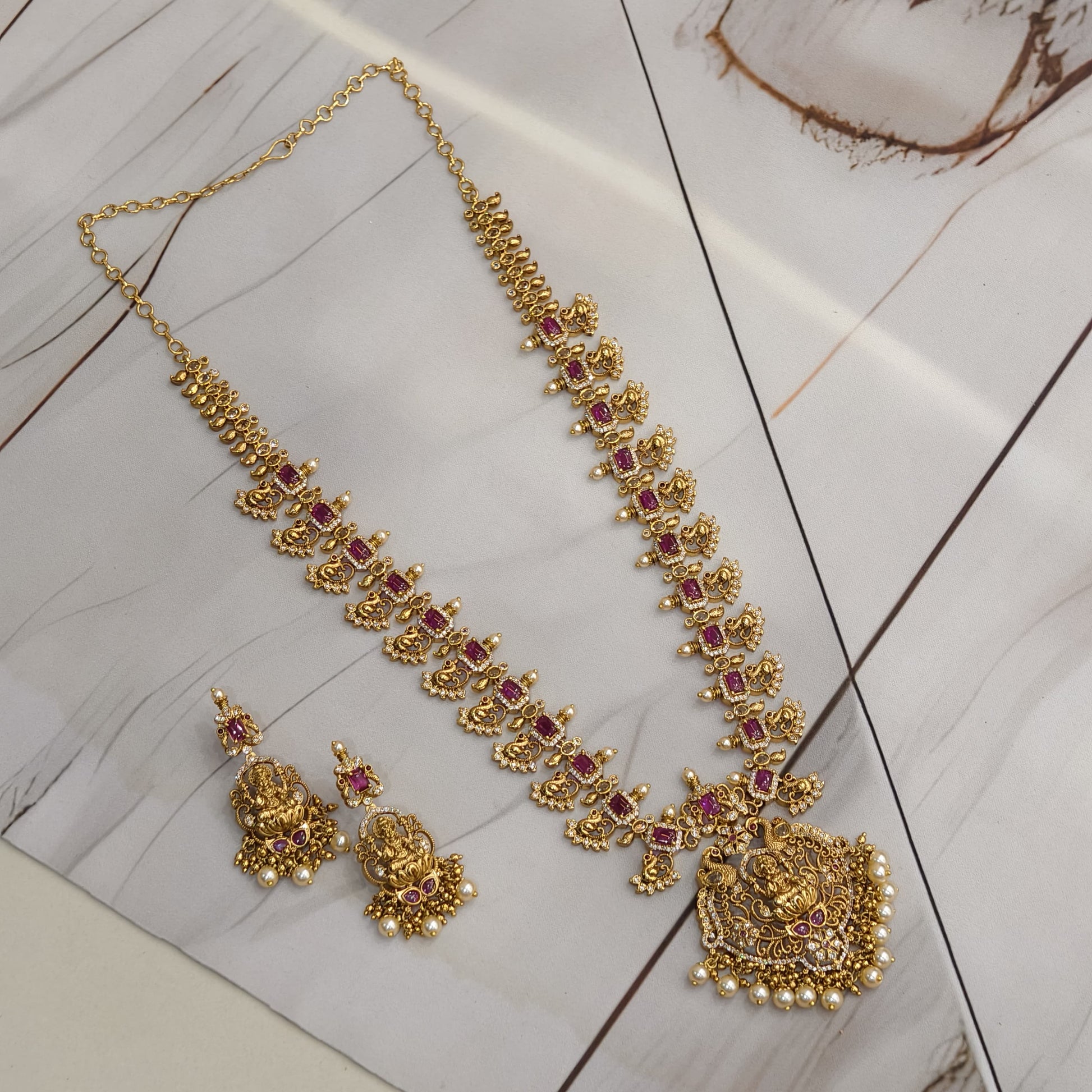 Premium quality Nakshi finishing peacock pattern long haram.with chandbali earrings.for weddings and functions.