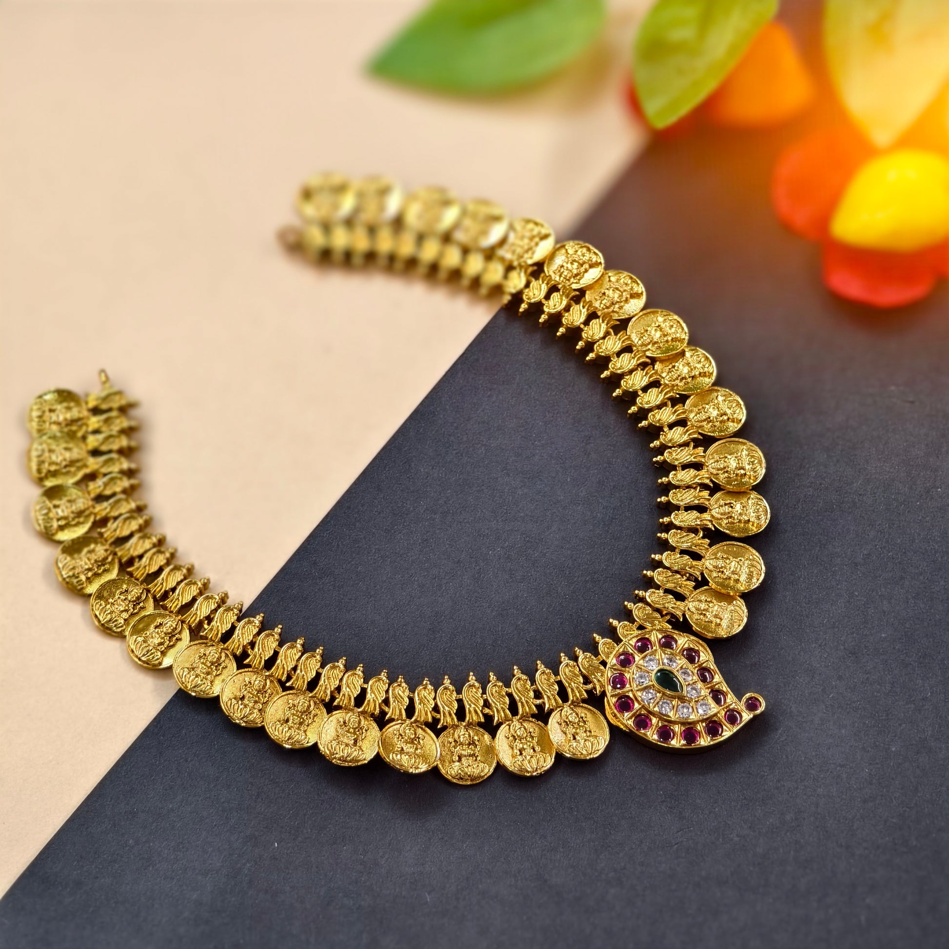 Antique nakshi finishing mango Haram. Real chempu and uncut stone combination mango design pendant. Kasu mala . Traditional wear for during weddings and functions .