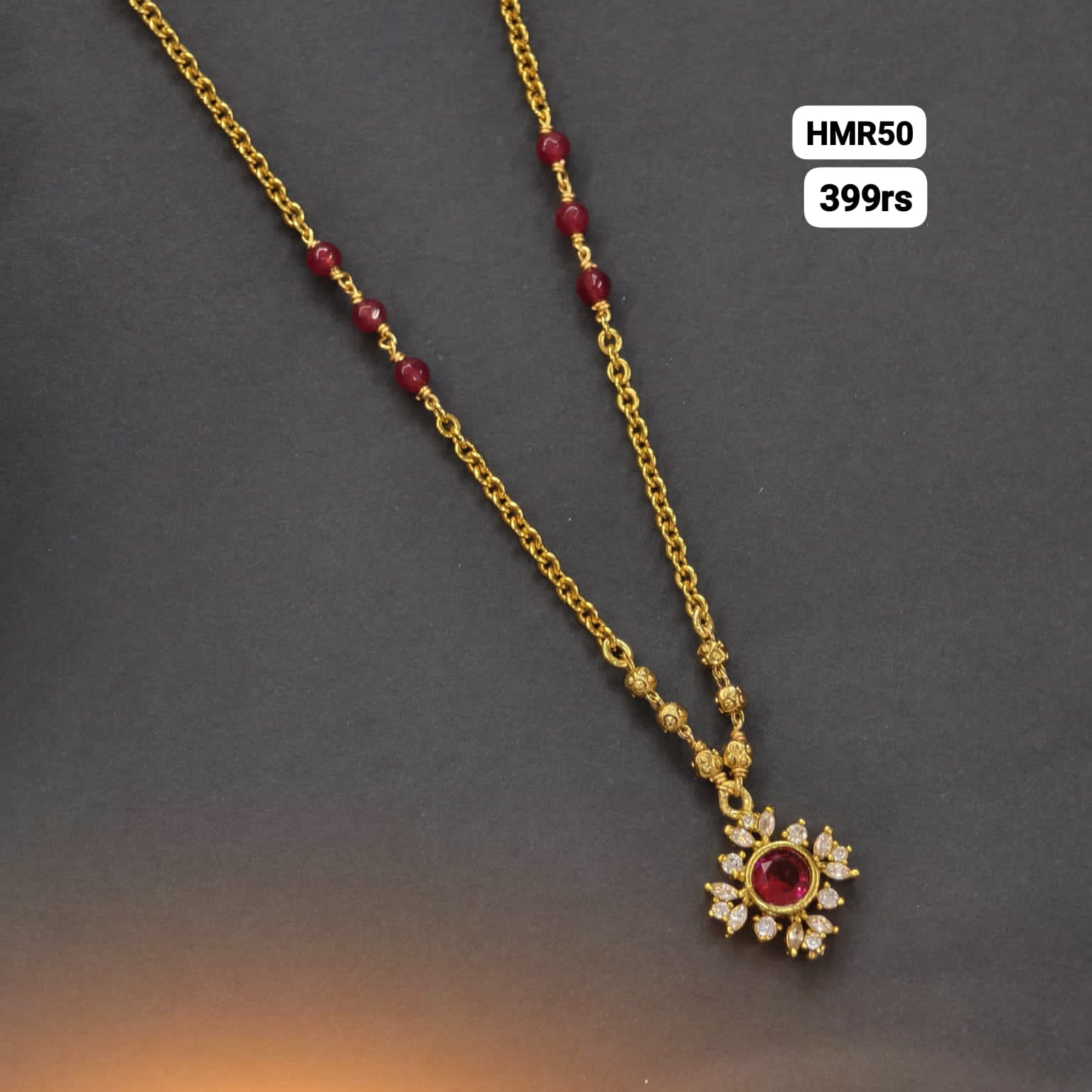 Chain with maroon beads.with white and maroon stone combination pendant.kids wear.simple and elegant look.