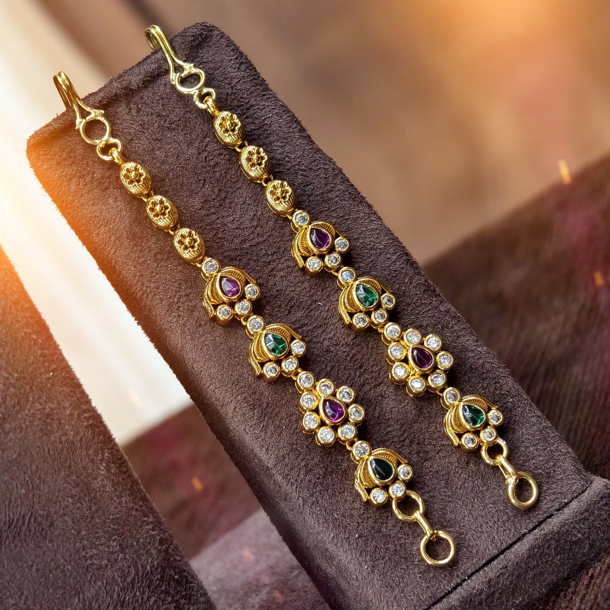 Beautiful handmade product.TRADITIONAL WEAR matilu.flower pattern green,pink and white stone combination.duting functions and weddings.