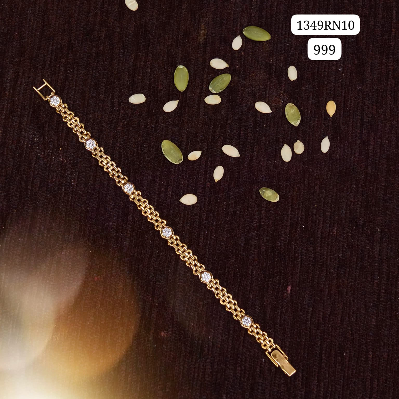 Micro gold finishing men bracelet with white stones.