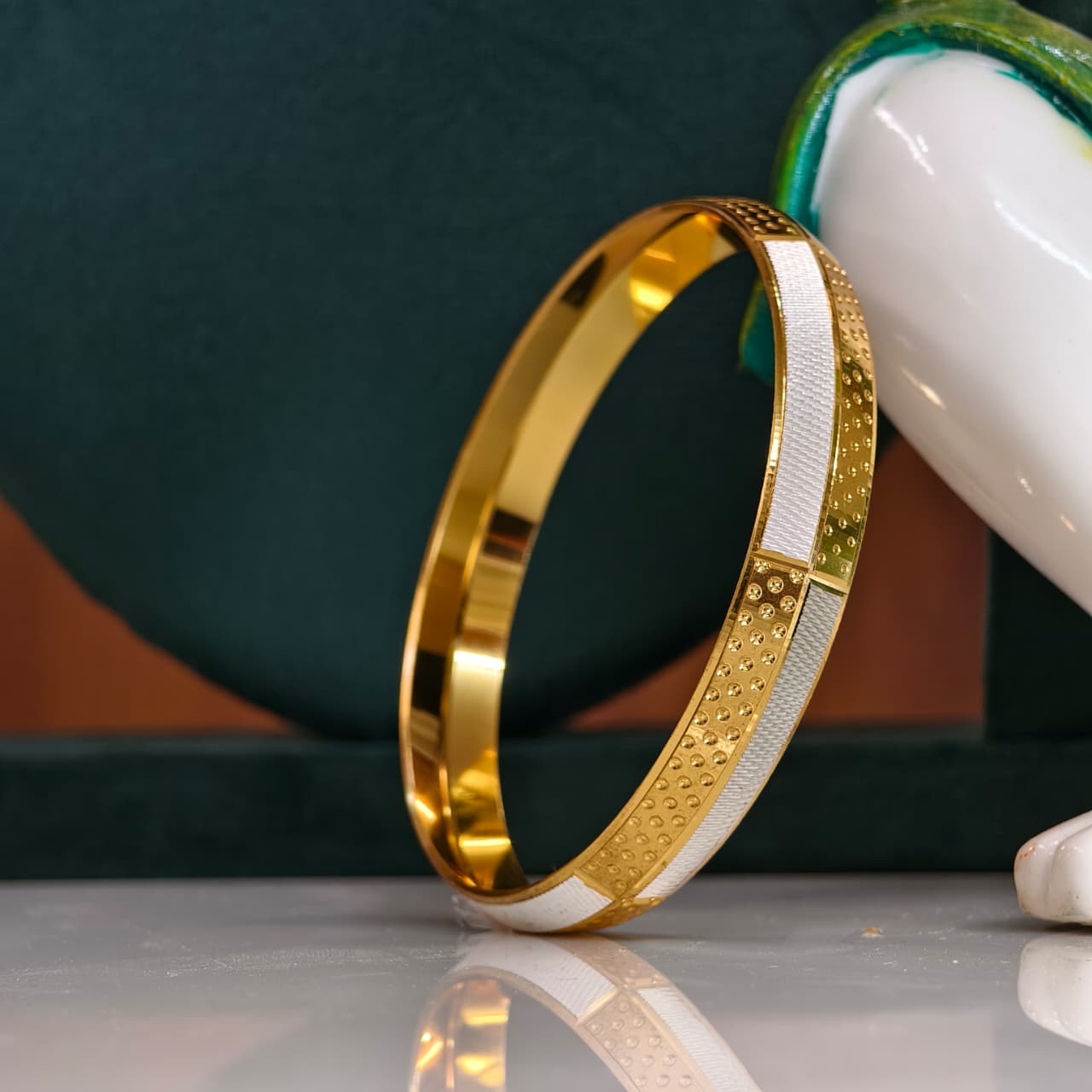 Traditional kada.A piece defined by strength and simplicity. Crafted from durable stainless steel and micro gold plated. Size is 2.8