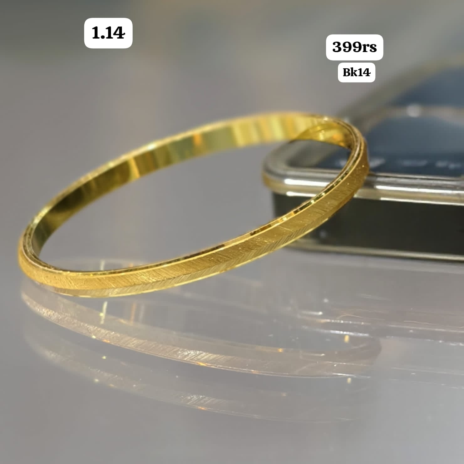 Elevate your traditional wardrobe with this sophisticated men's kada in gleaming gold finish. Crafted with precision, this 1.14-sized bangle combines timeless elegance with contemporary styling, making it an ideal accessory for both festive occasions and everyday wear.