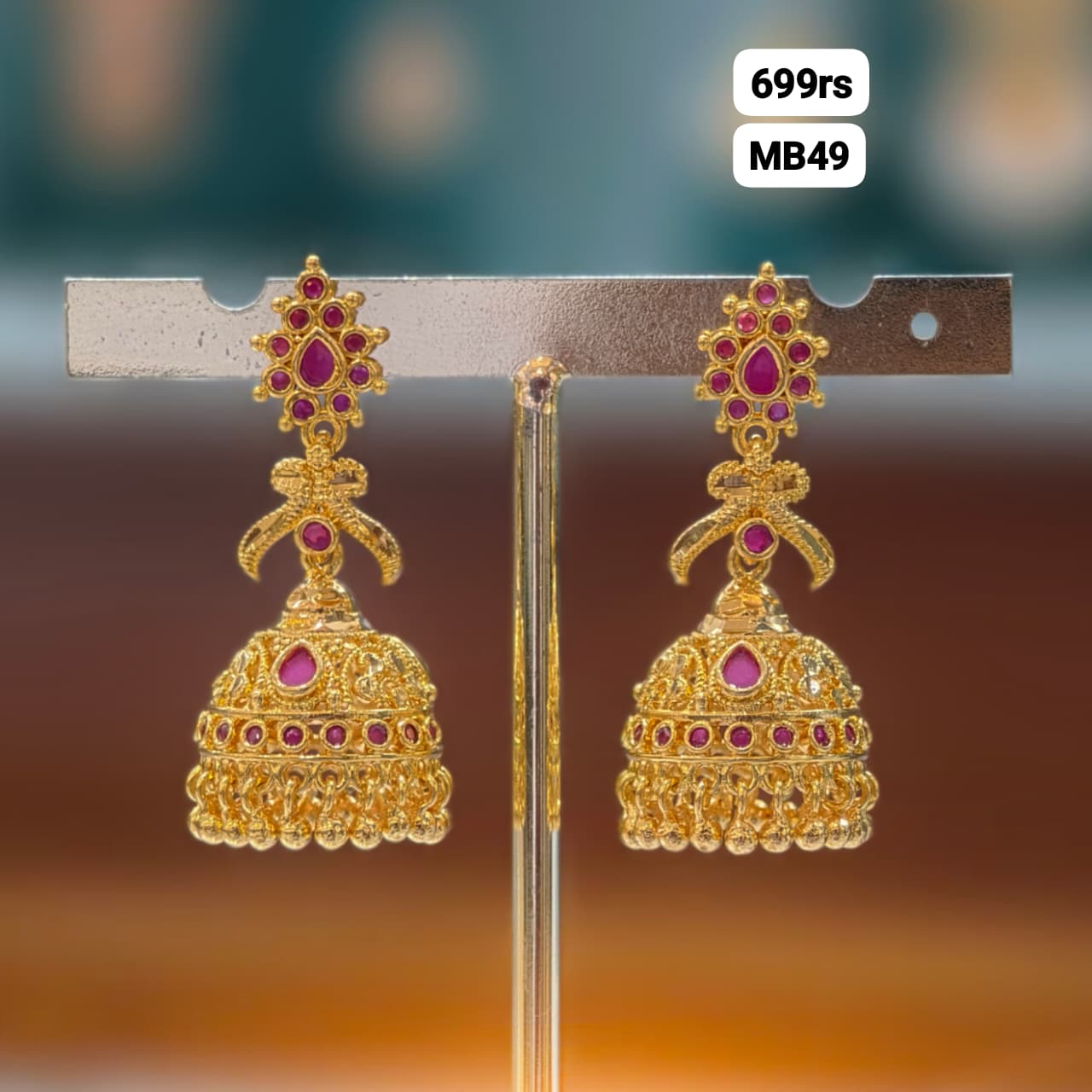 Micro gold jhumka earrings with pink stones — perfect for festive and traditional looks. ✨