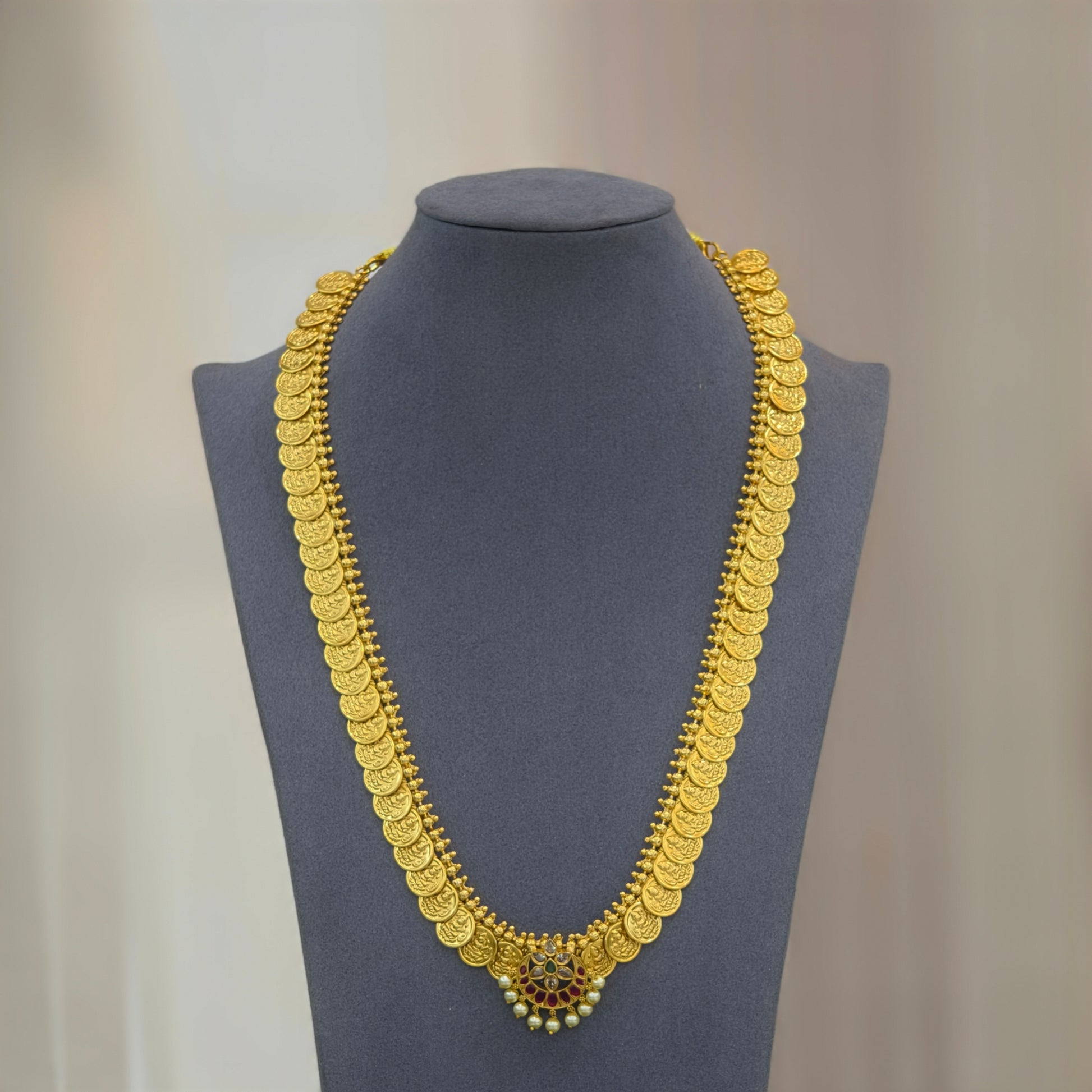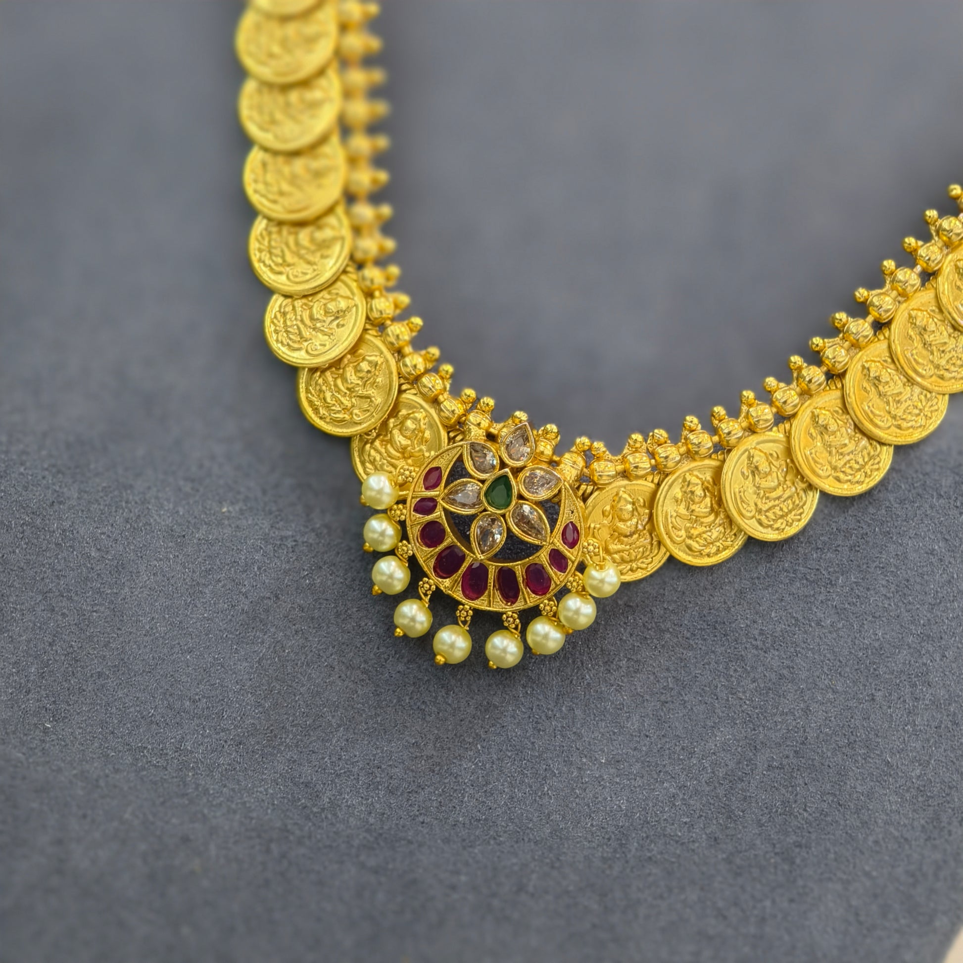 Antique finishing kasu neck piece.laxmi kasu motive.kempu and white stone combination.at budget friendly.